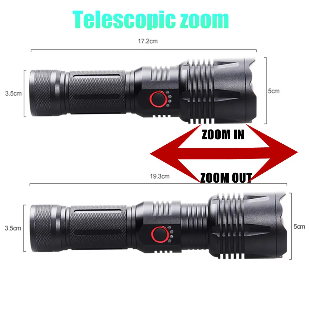 Super 80W LED Flashlight Rechargeable Flash Light USB High Power LED Flashlights 15000mAh Zoom Tactical Lantern Long Shot Torch