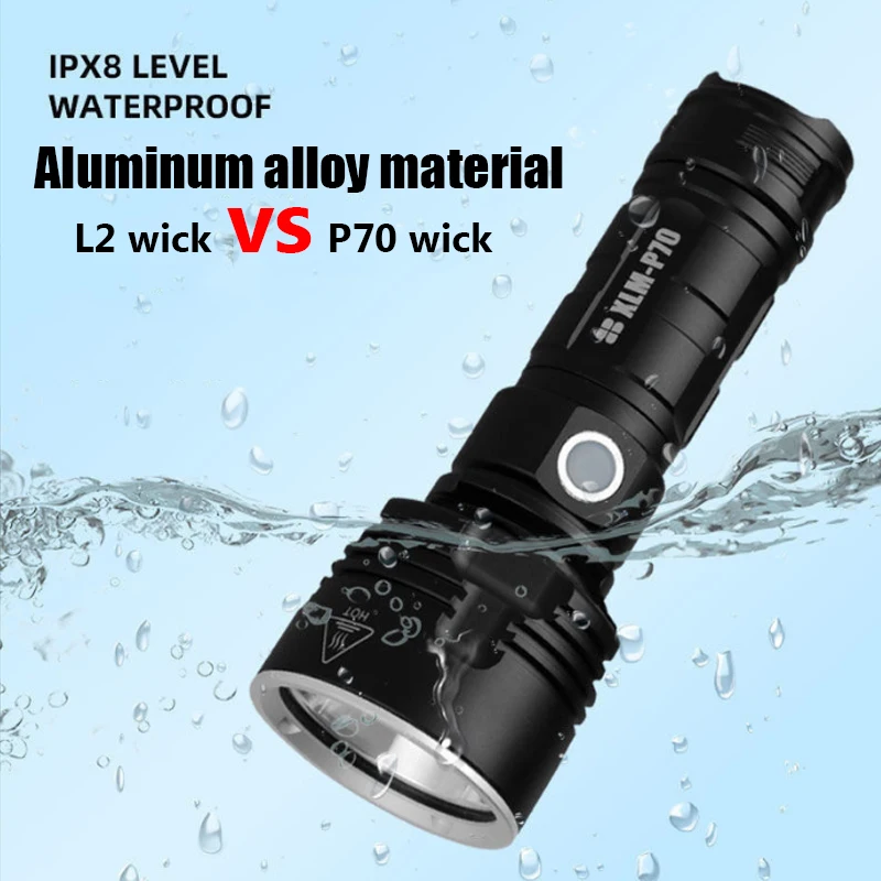 Super Bright High Power Led Flashlight P70 USB Rechargeable Flashlight Waterproof Light 26650 Battery Flashlight Camping Light