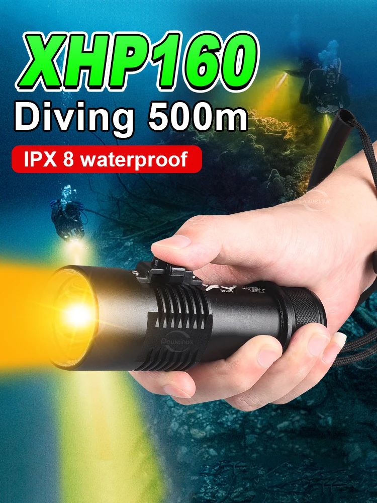 Super Bright Profession XHP160 Diving Flashlight Powerful Underwater LEDs Torch Rechargeable Yellow Hand Lamp Waterproof Lantern