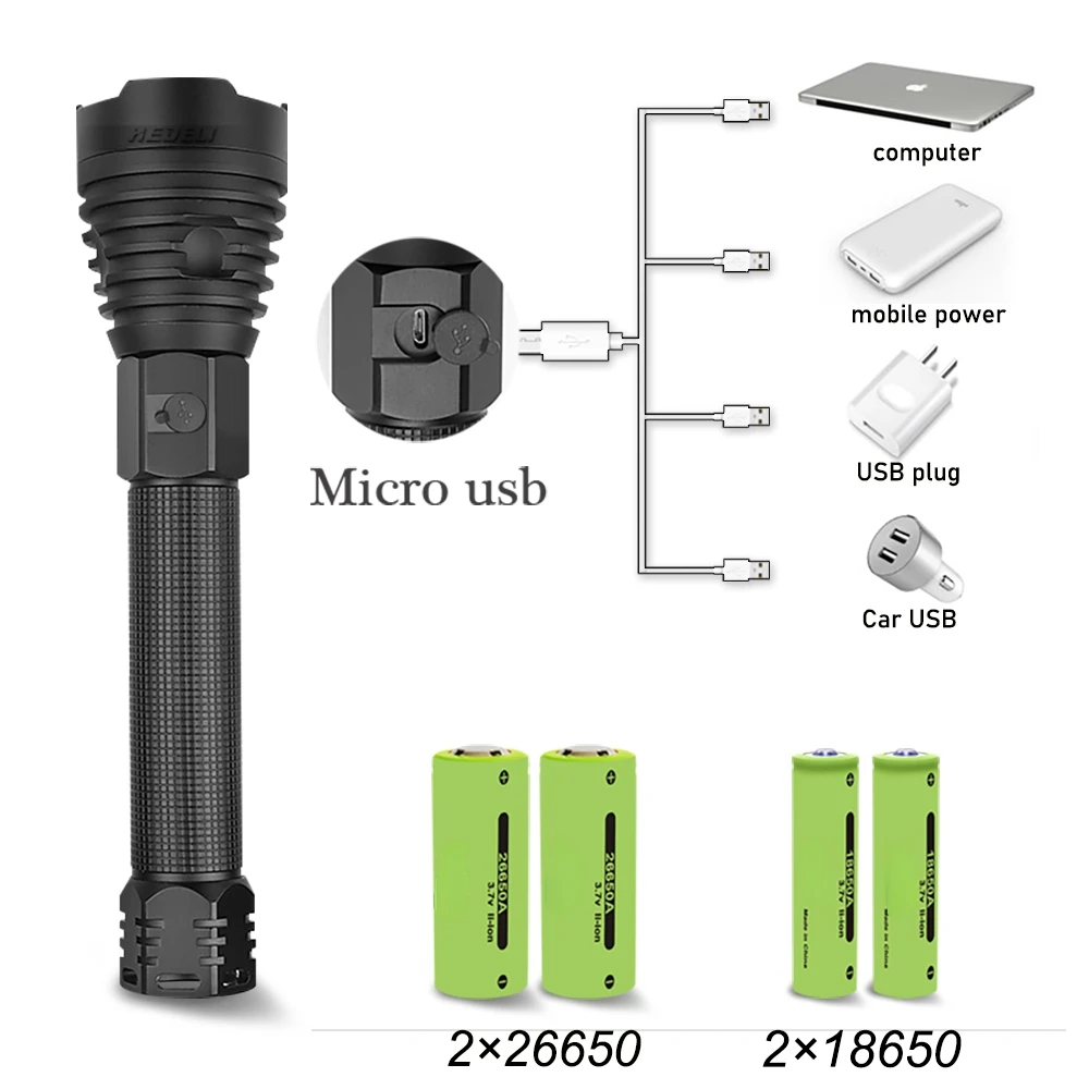 • Lighting time: 18650 battery 4-5 hours ; 26650 battery : 7-10 hours.