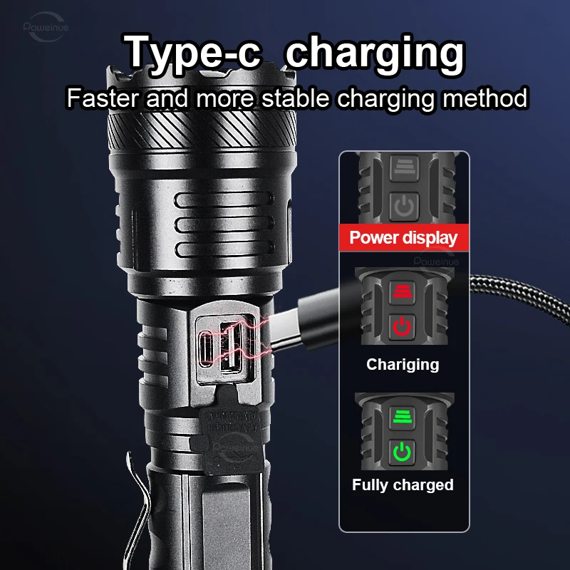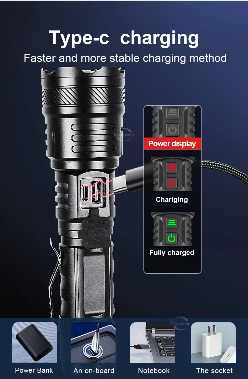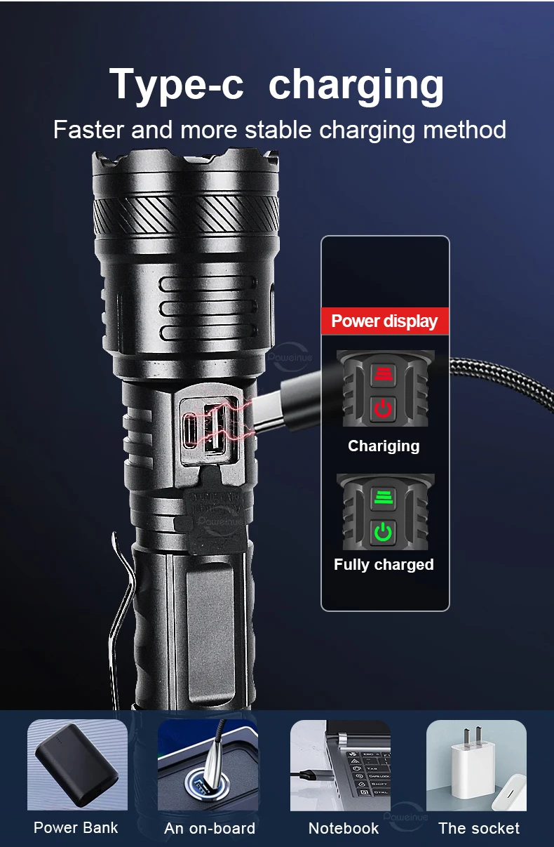 🔦 Support Type-C charging, without additional charging equipment, the Type-C interface charging equipment of general electronic products can be charged. And support power output.