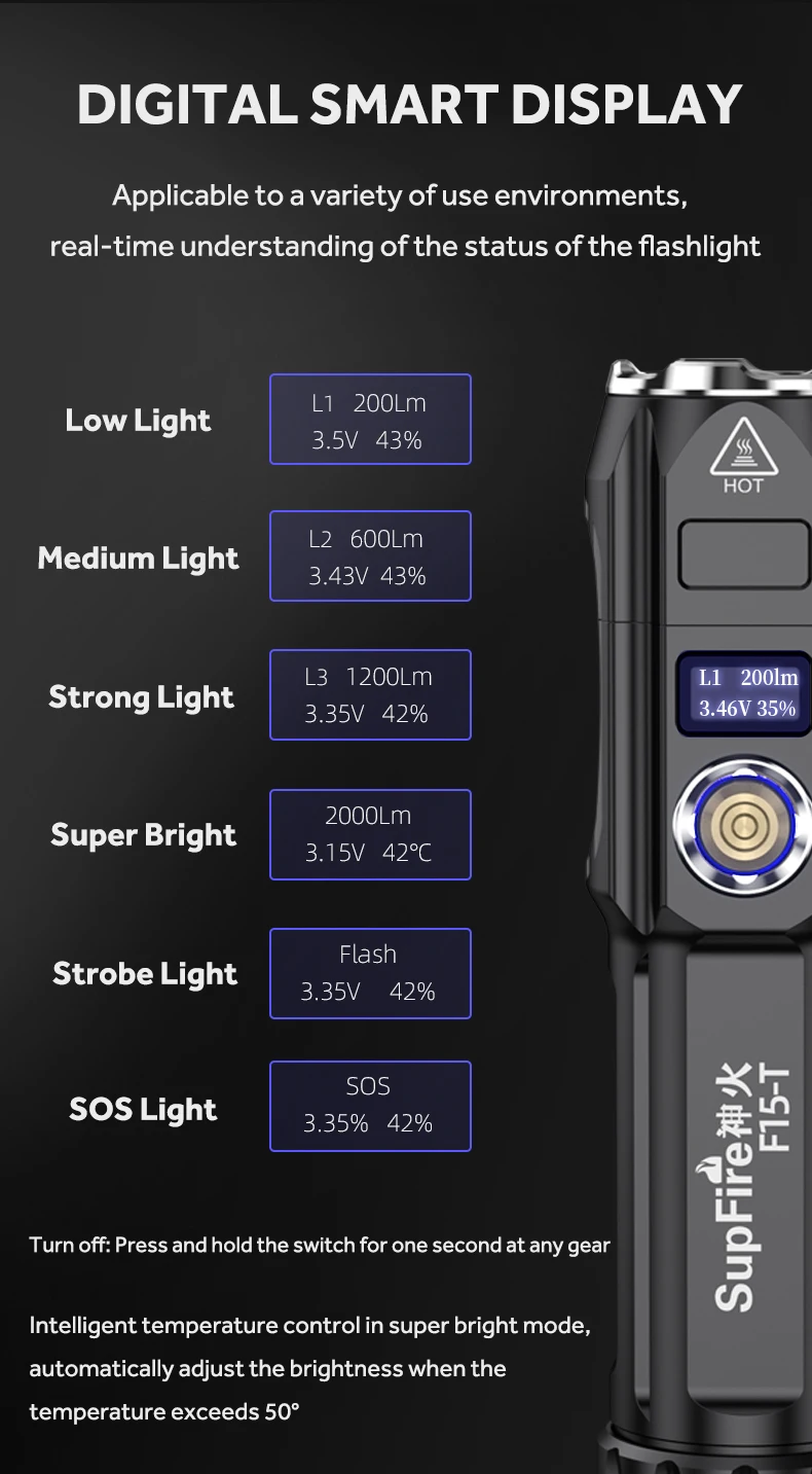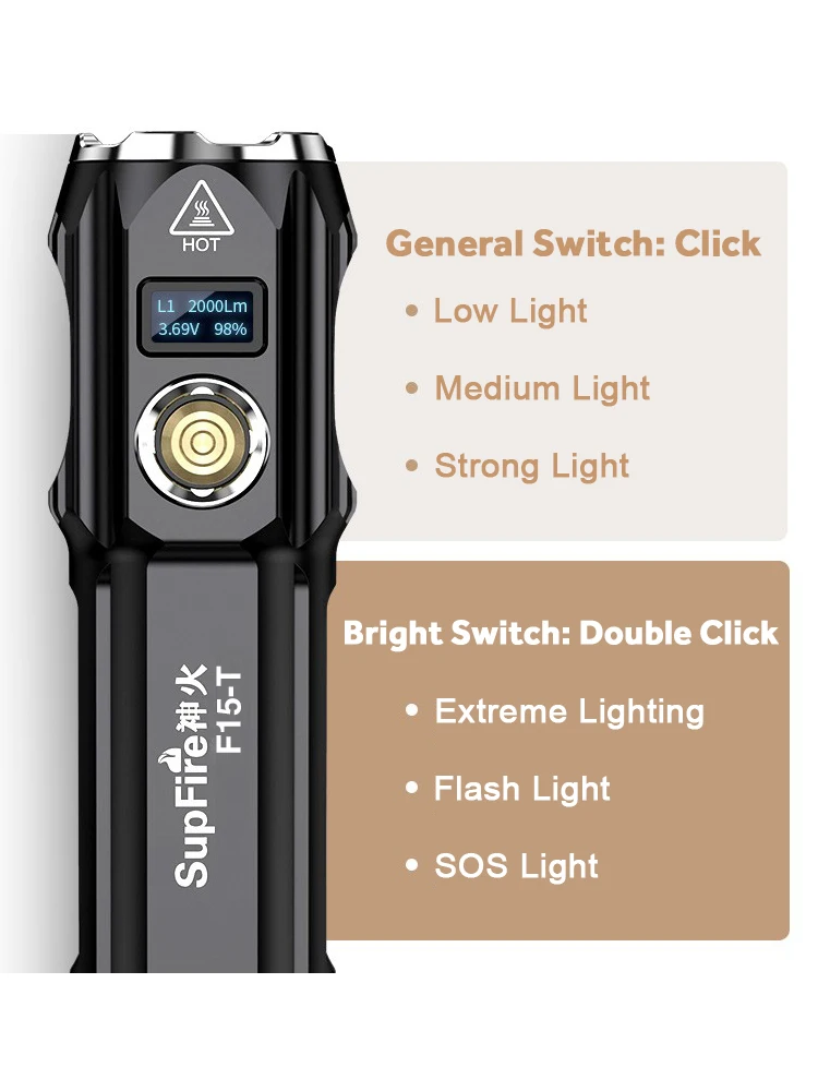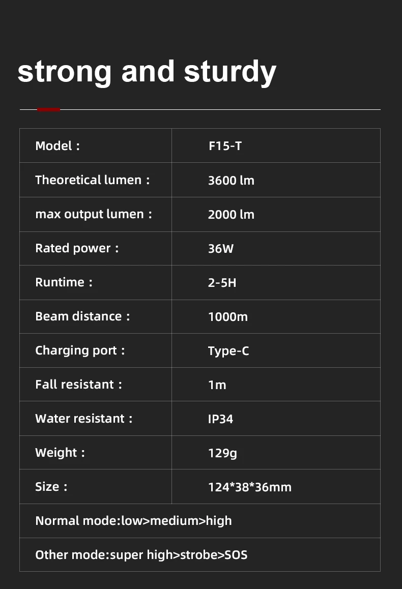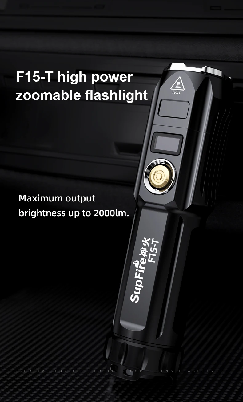 As a new release of SuperFire Series, F15-T is a cutting-edge zoom flashlight with super bright output of 2000 lumens in such a compact size.