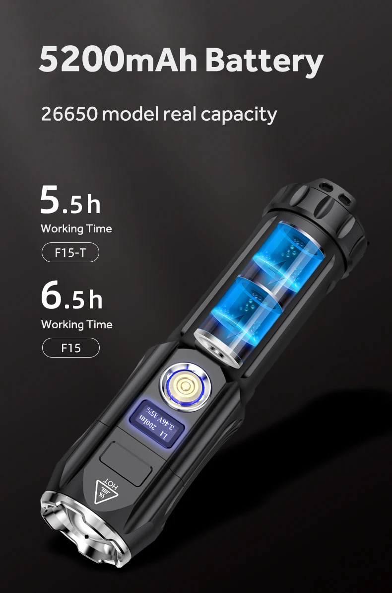 The F15-T delivers a remarkable output of 2000 lumens from P90 throttle chips with an upgraded lens that produces a perfectly balanced beam with a distance up to 200 meters.