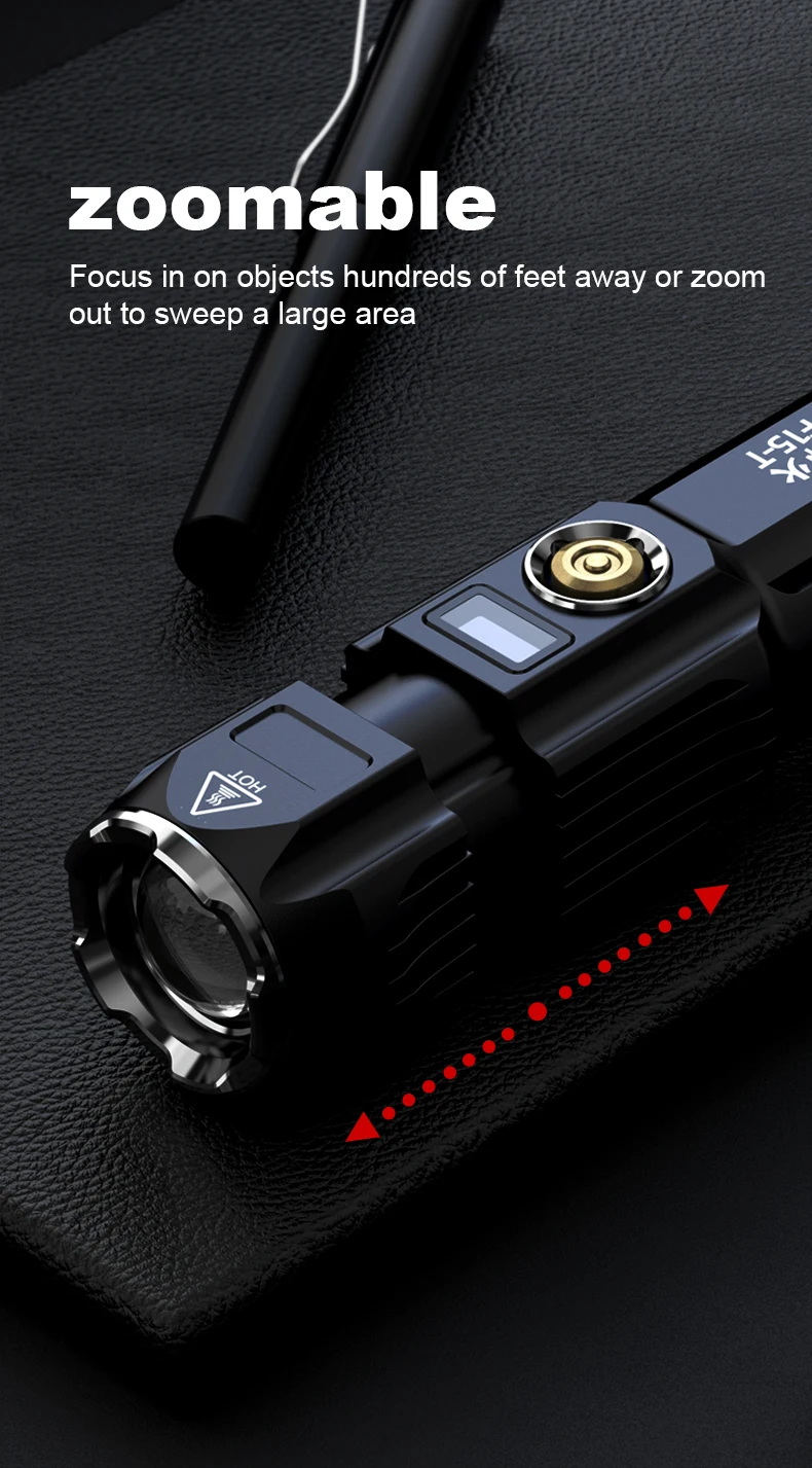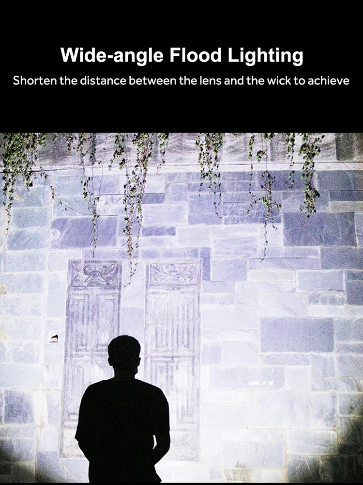 Lens telescopic focusing design, achieve innovative combination of spotlight and floodlight to meet your lighting needs in hiking, camping, searching and photographing.