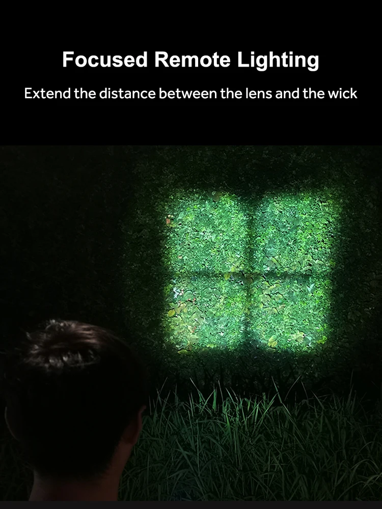The beam spot is more focused than a general flashlight, a tight spotlight is ensured even froma few hundred meters away.