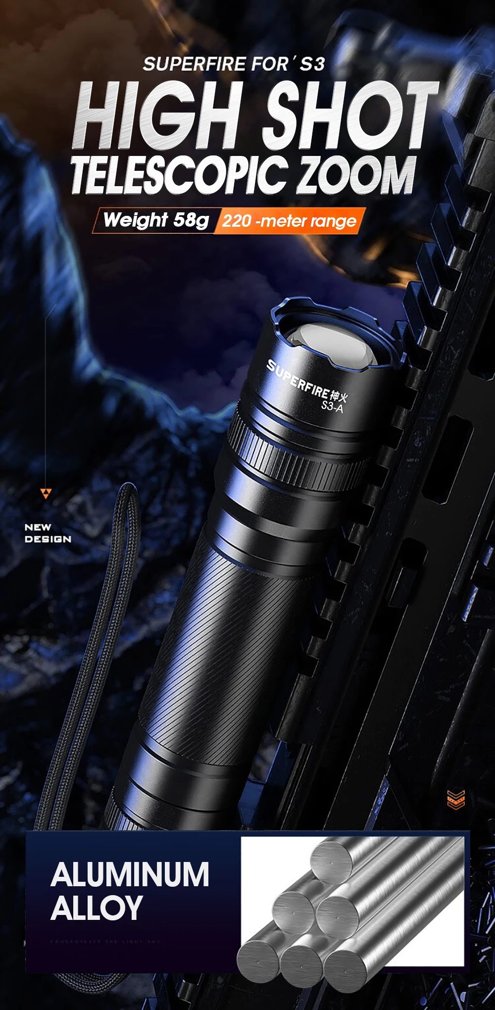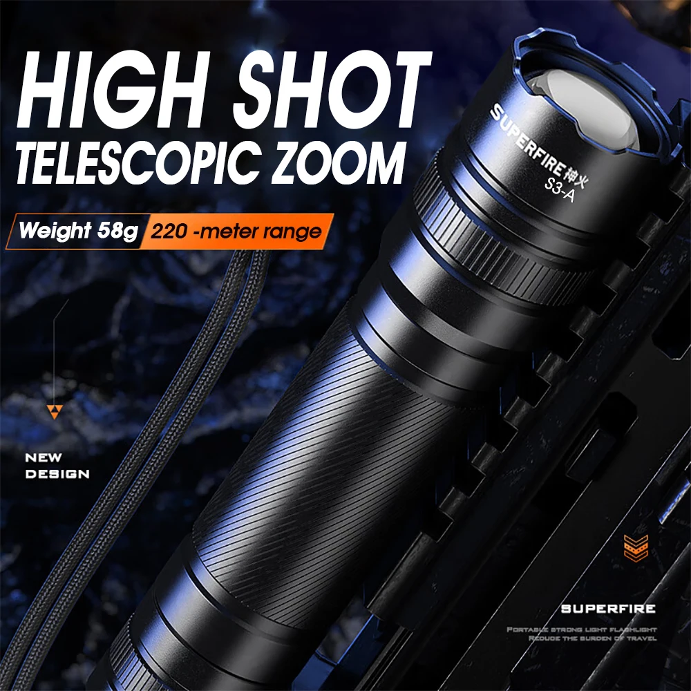 SUPERFIRE Mini LED Rechargeable Flashlight Torch Zoom Small Hand Lantern EDC High Power Waterproof Flash Light With 18650Battery