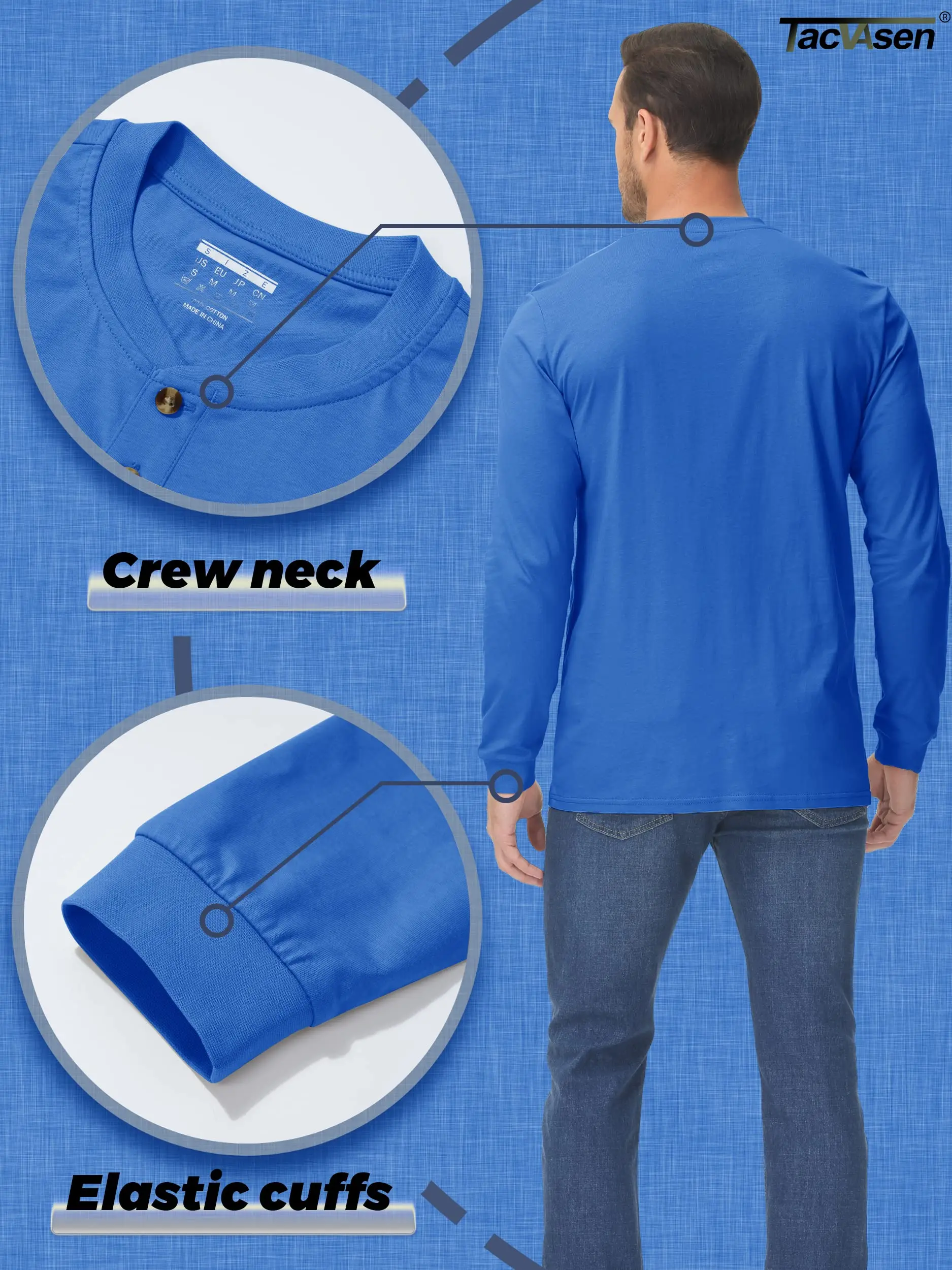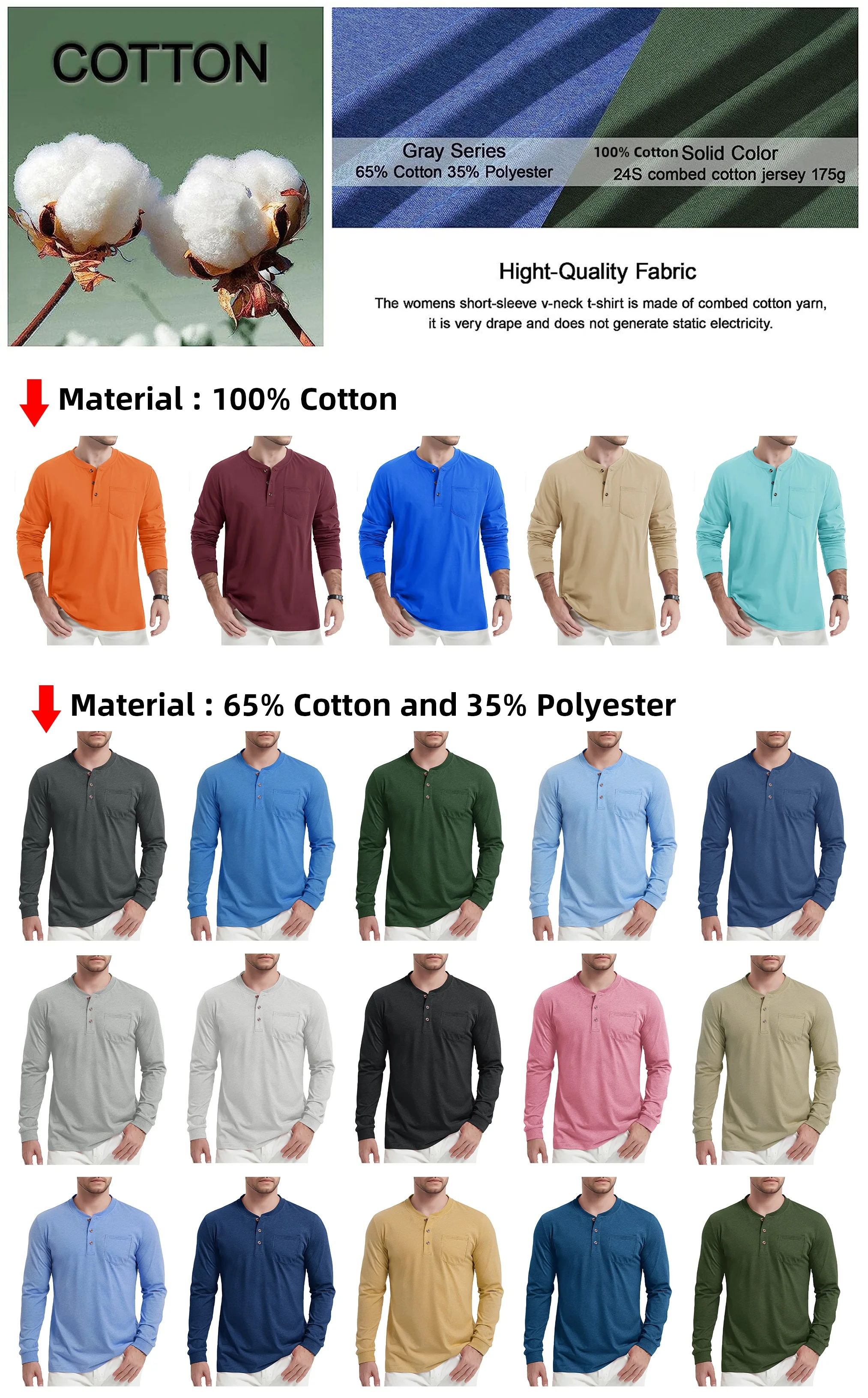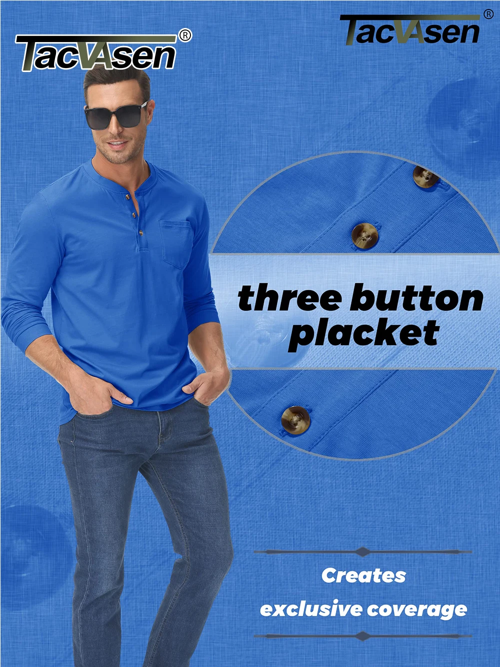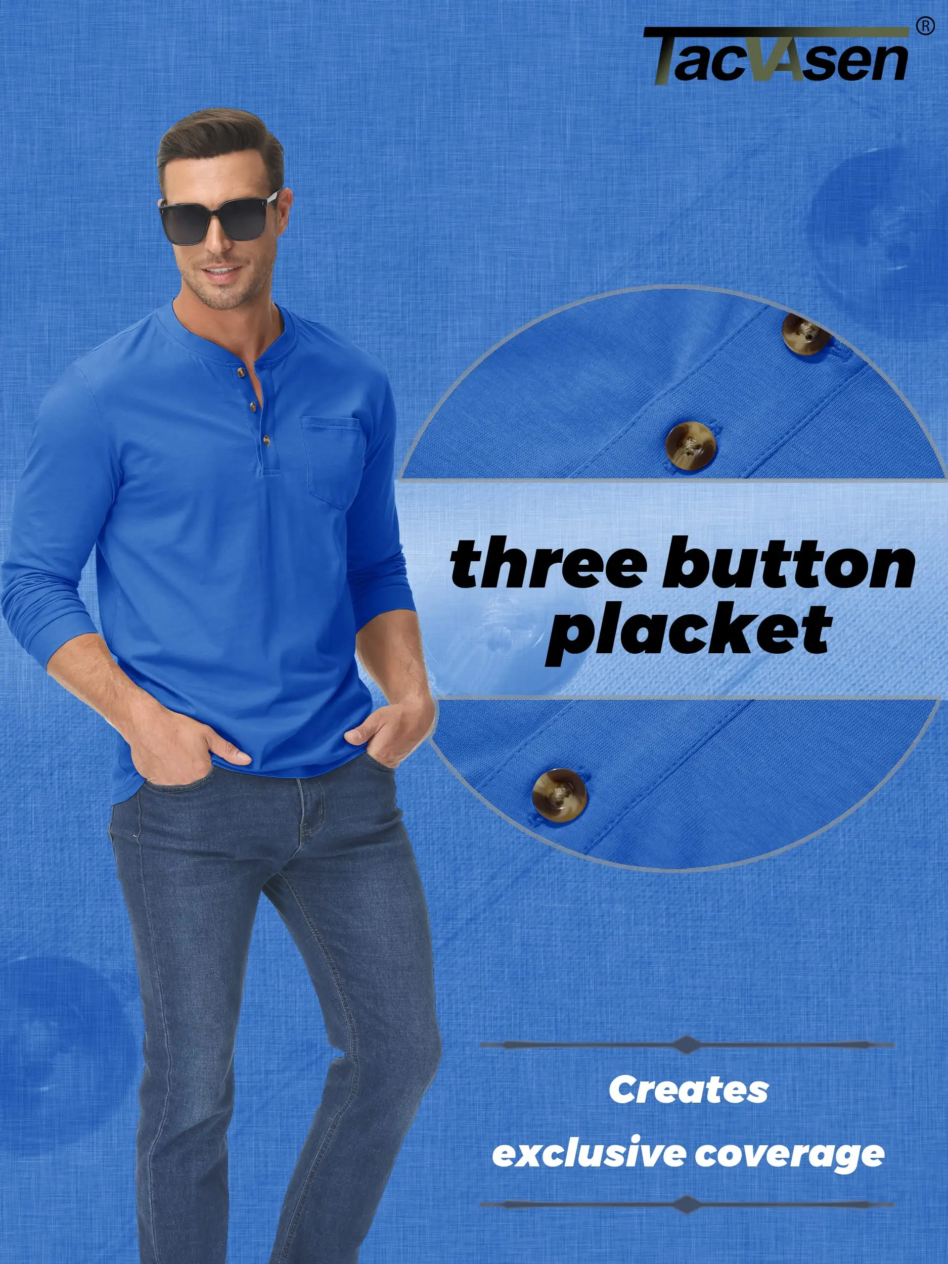 * Classic 3 Button Henley Collar.