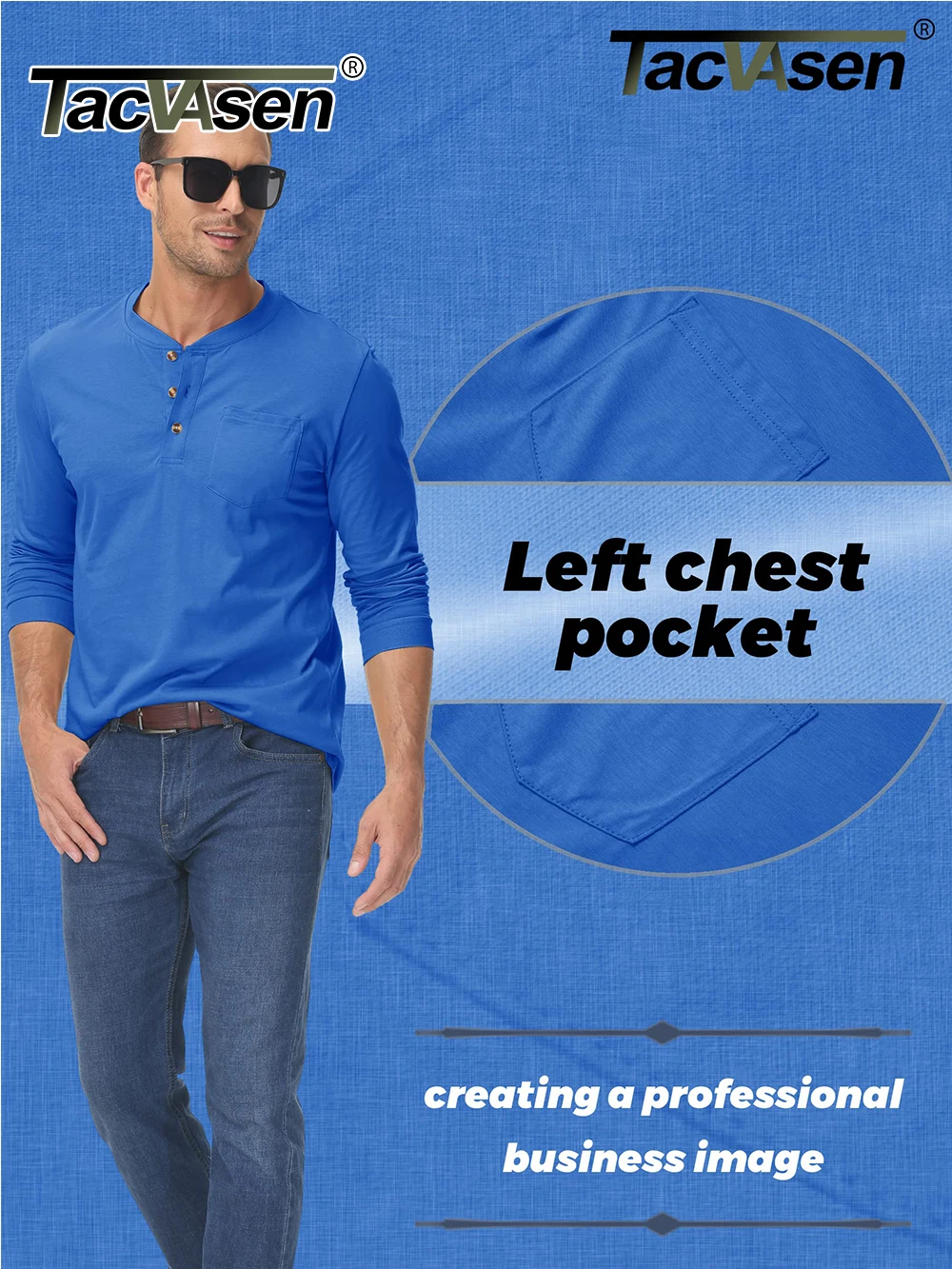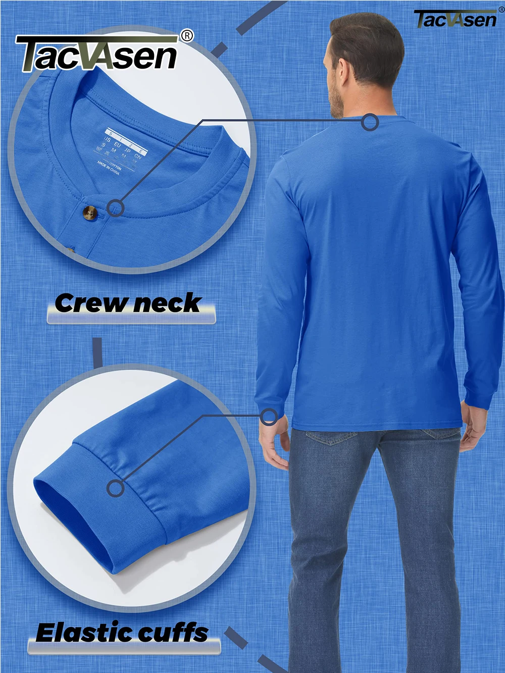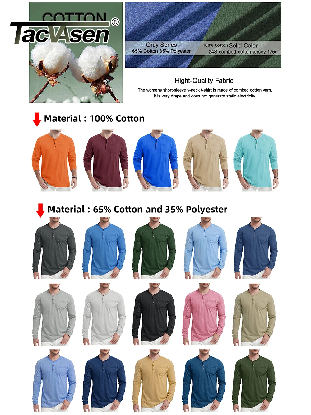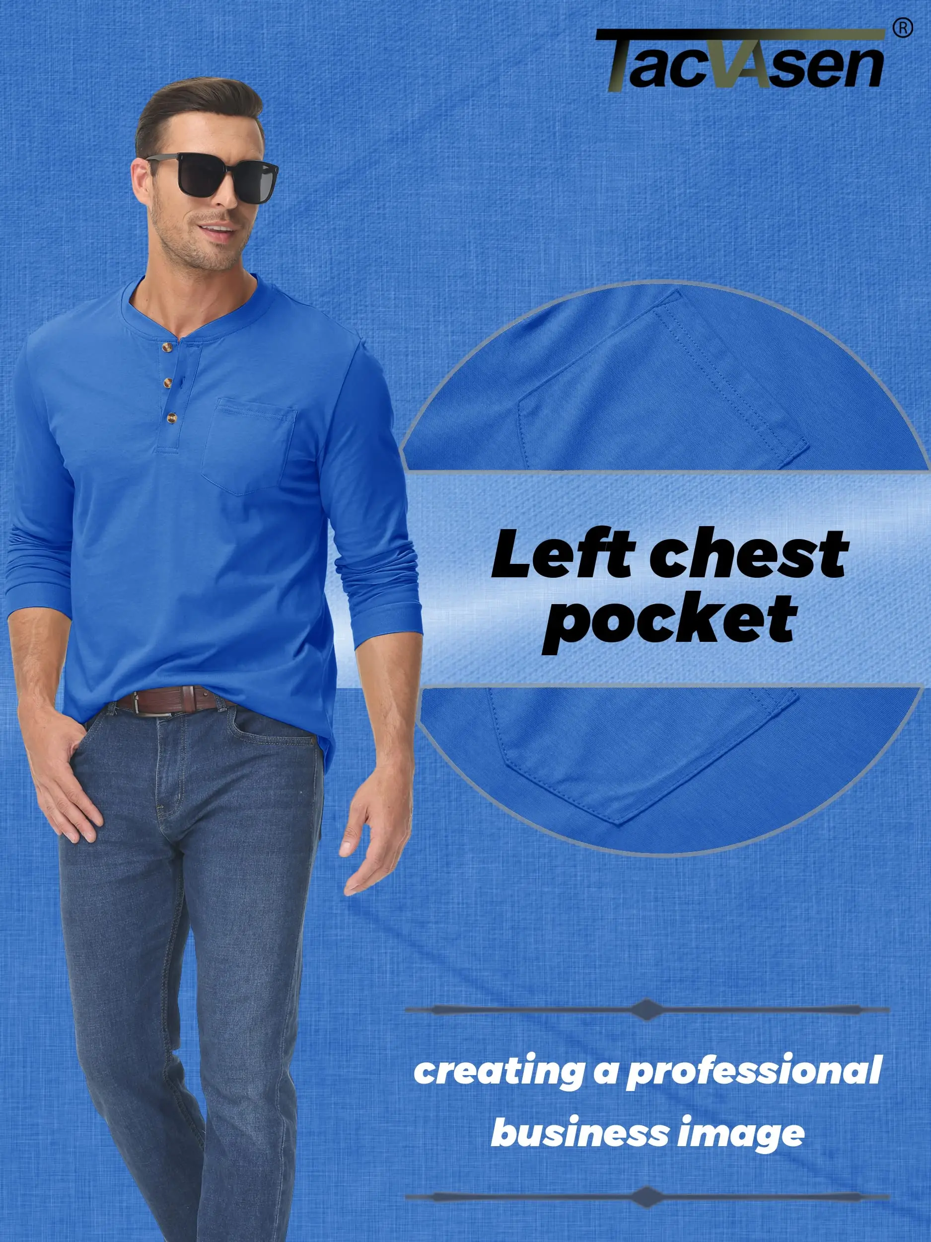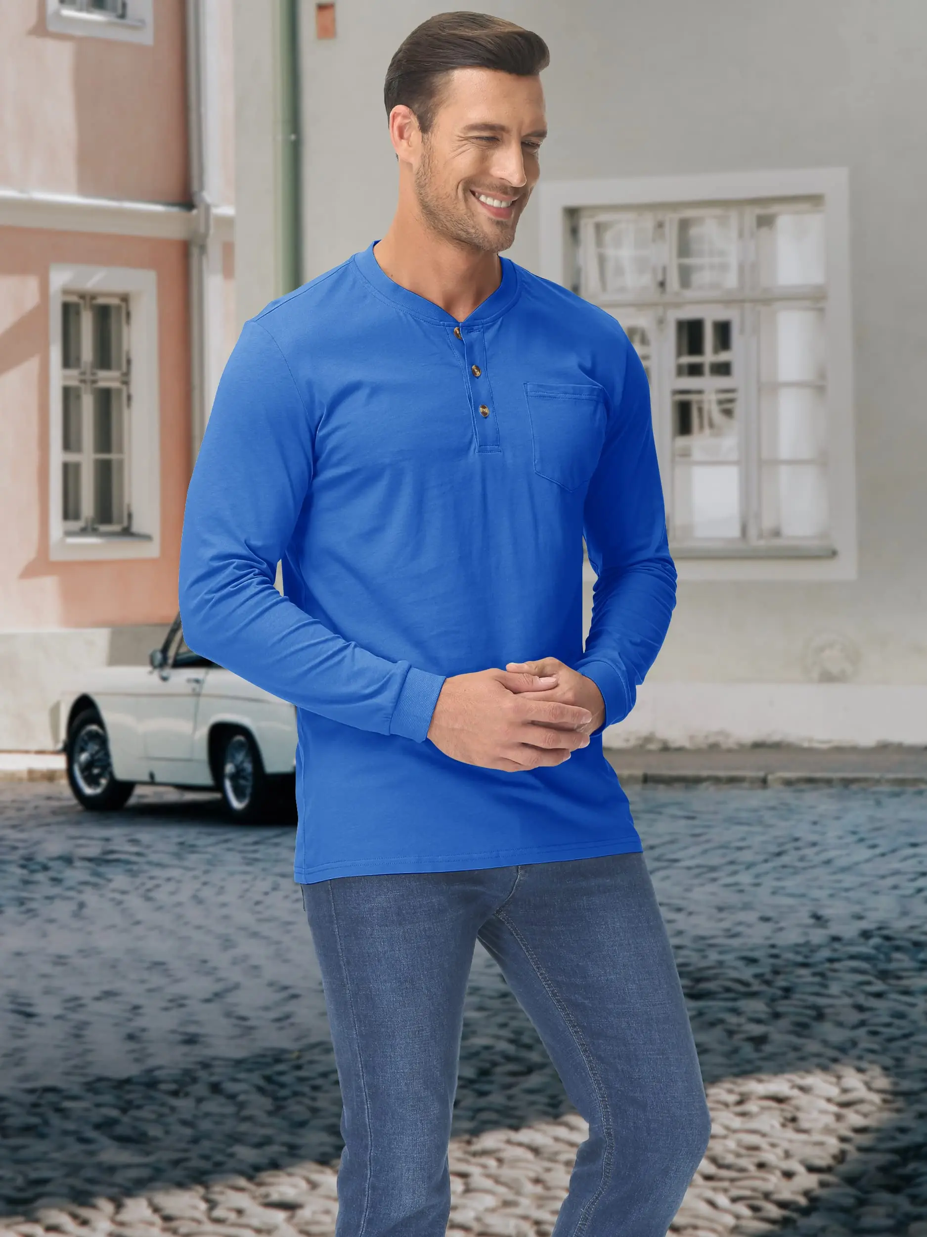 * Classic 3 Button Henley Collar.