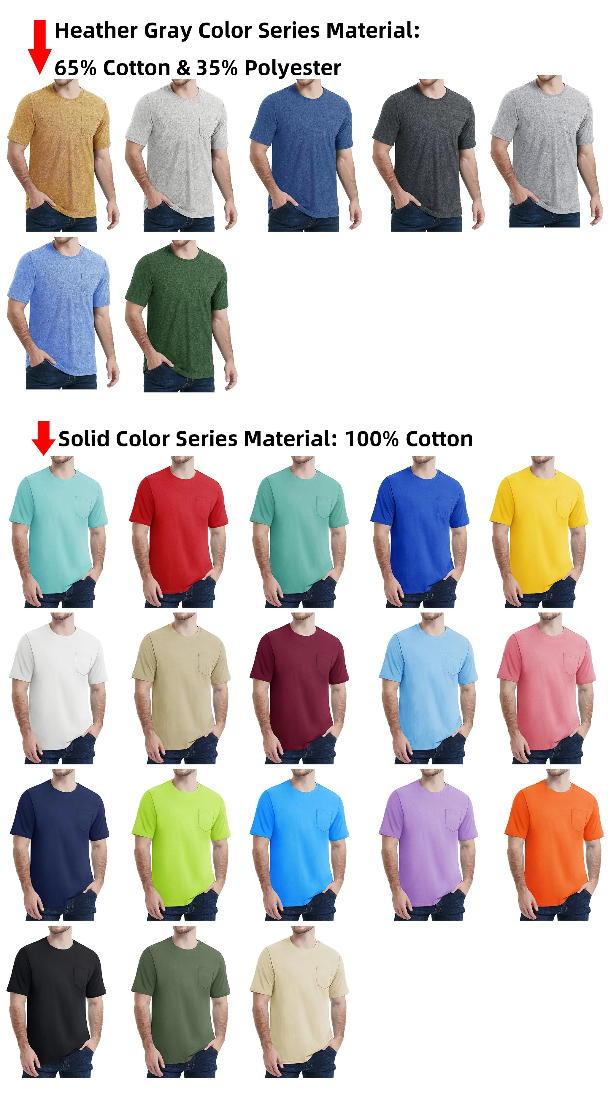Heather (ash) Gray Color Series: 65% Cotton & 35% Polyester.