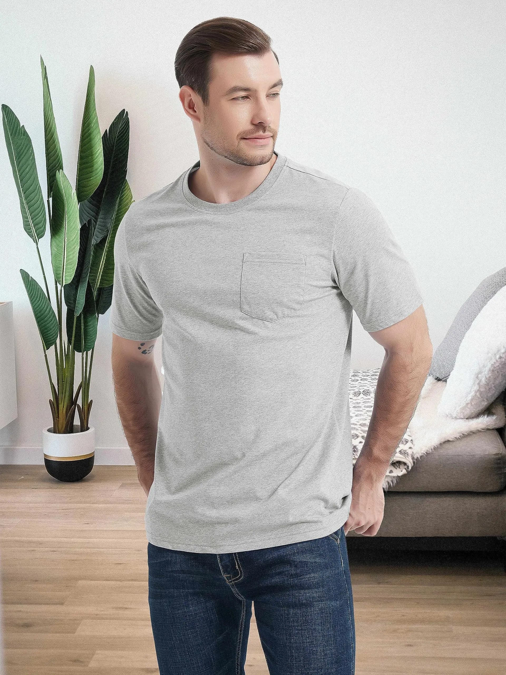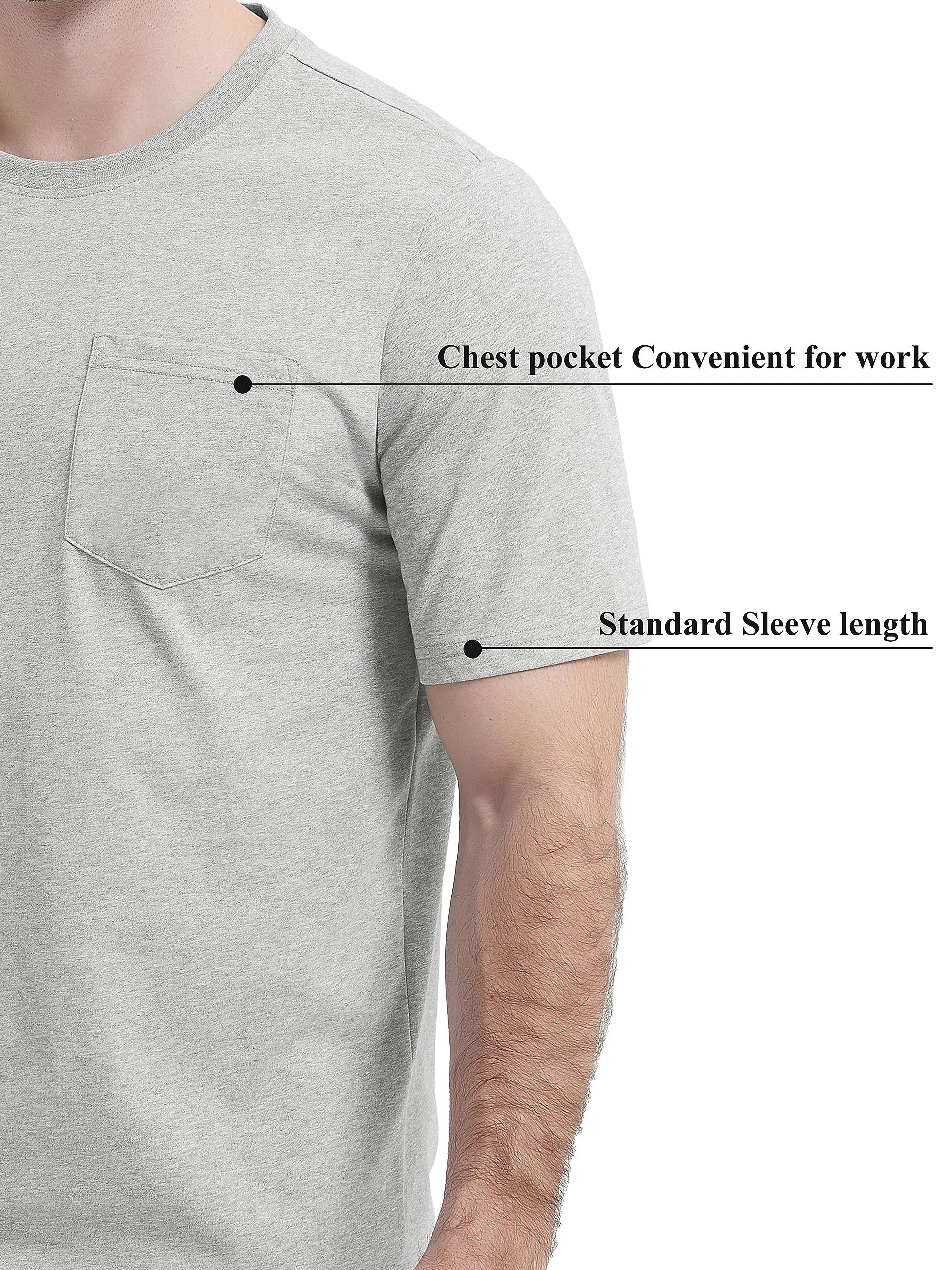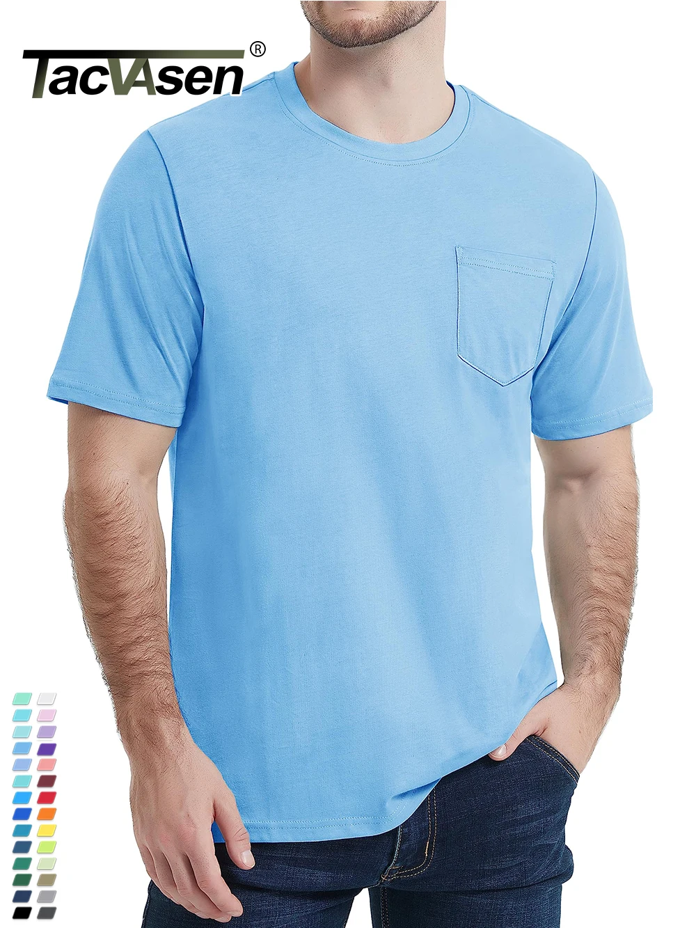 TACVASEN Short Sleeve Crew Neck Cotton T-shirts With Chest Pocket Men’s Casual T-shirt Sports Pullover Basic Tee Shirts Tops Man