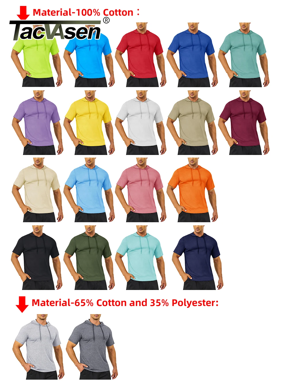 1x Short Sleeve Hooded T-shirt as picture show for man.