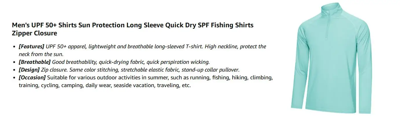 1x Anti-UV 1/4 Zipper Collar long sleeve shirt for man.