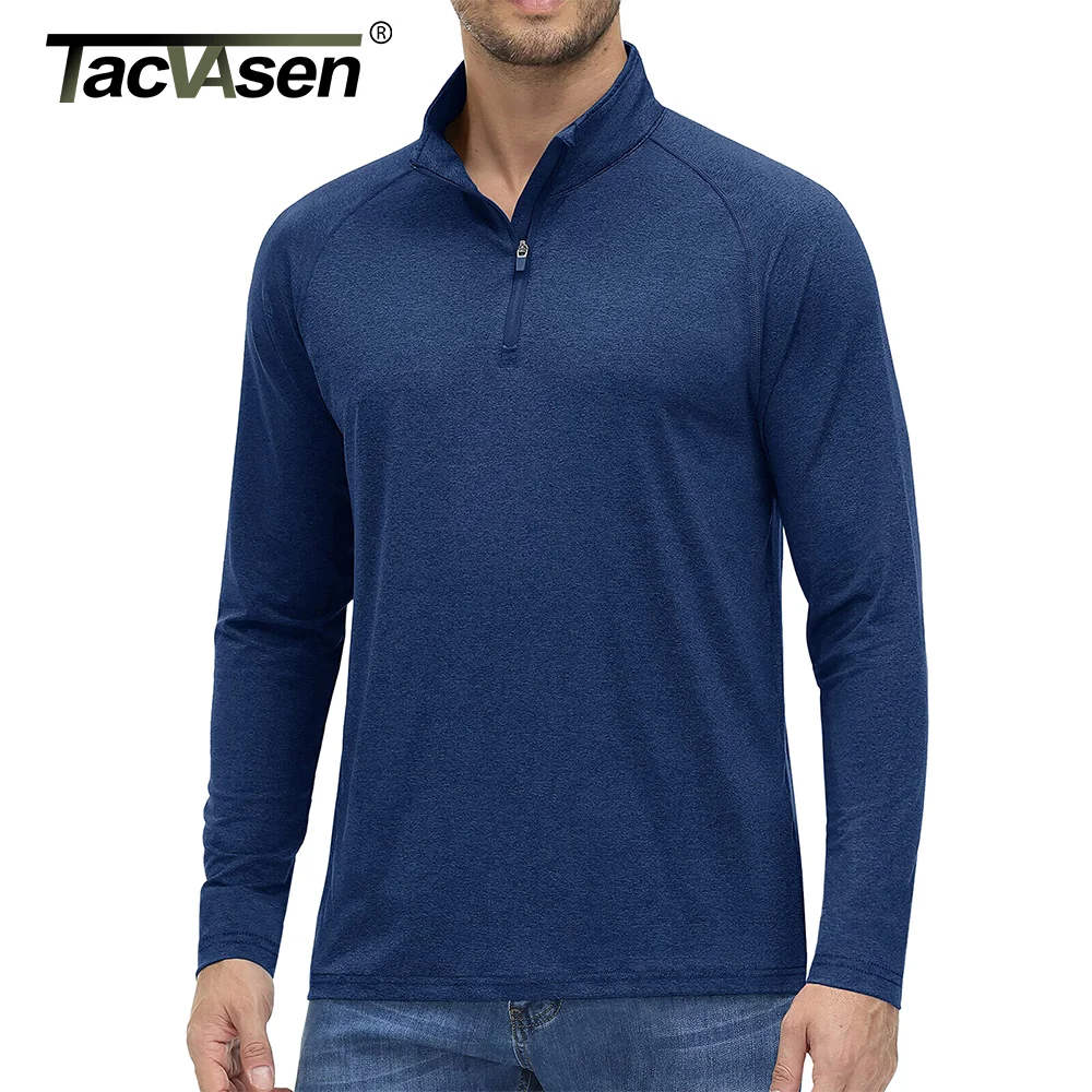 TACVASEN UPF50+ 1/4 Zip Collar Pollovers Anti-UV Tops Mens Long Sleeve Sun/UV Protection T-Shirt Running Athlete Tshirts Outdoor
