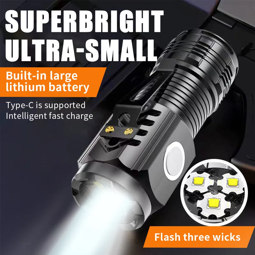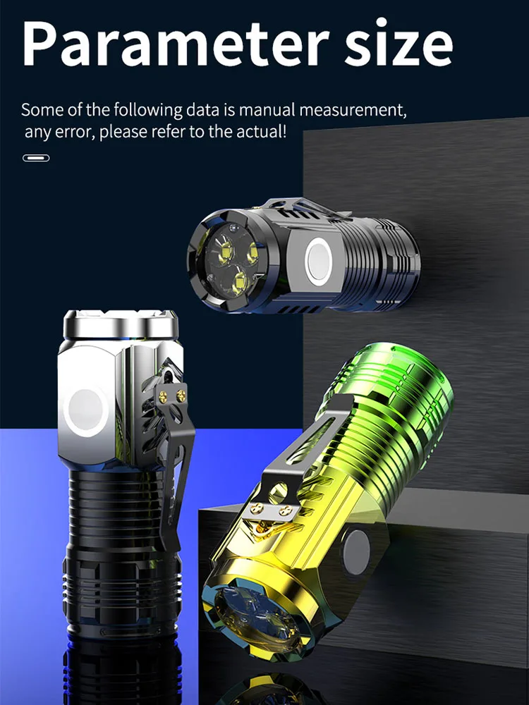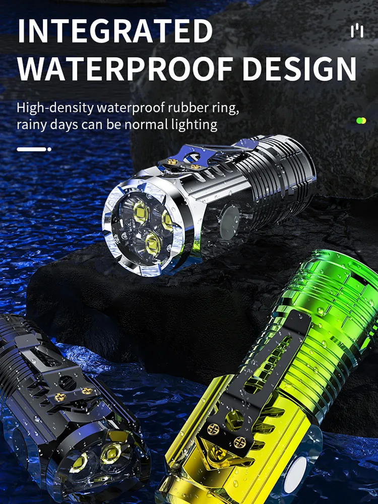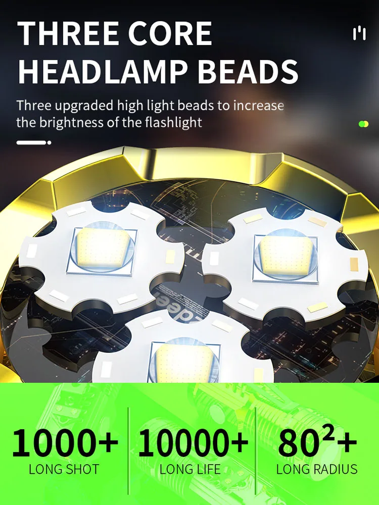 5. Three Upgraded High-brightness Lamp Beads, With A Triangular Structure, Greatly Improve The Brightness Of The Flashlight, Focus The Light More Concentratedly, And Provide Stronger Long-range Performance.