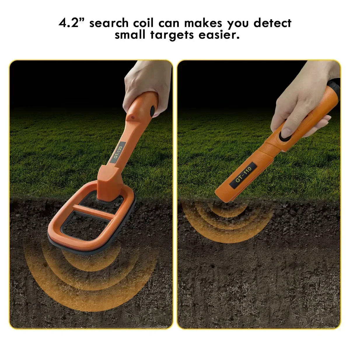 The 4.2″ serach coil helps to detect small items in a variety of hunting conditions.