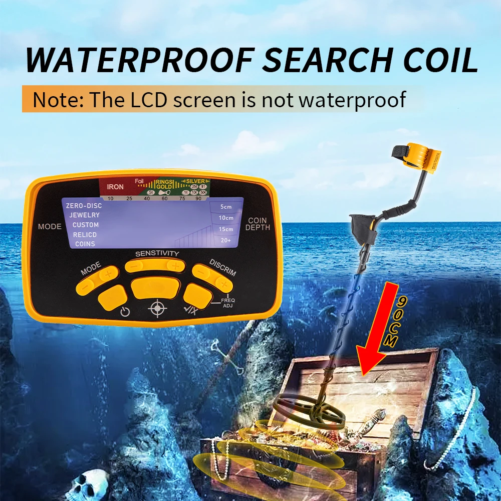 1, MD-6450 Underground Metal Detector Gold Digger Treasure Hunter updated version of MD-6350 Professional Detecting Equipment with backup light and digital display.