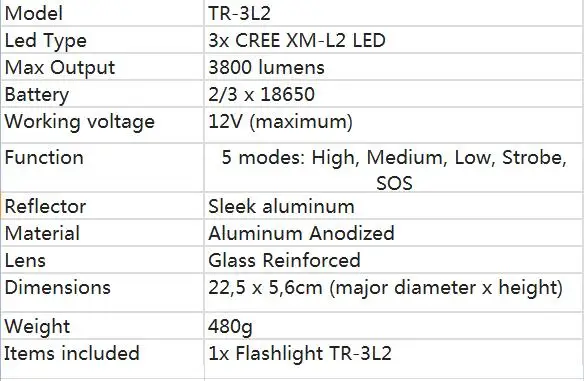Only suit for Original trustfire TR-3T6 TR-3L2 flashlight