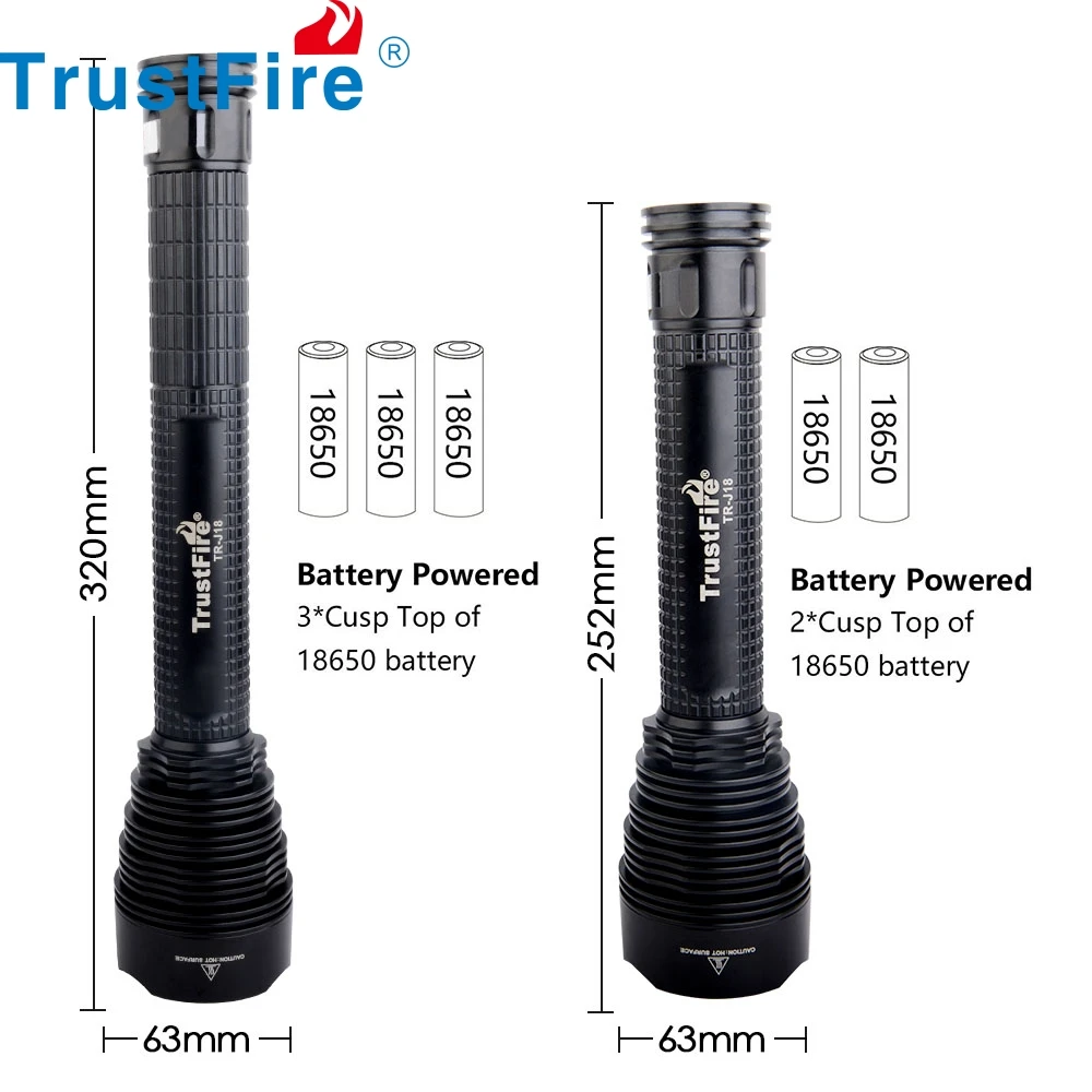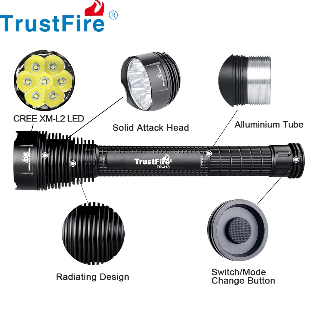 1/TrustFire 18650 LED Flashlight, J18 Super Bright 8000 Lumens