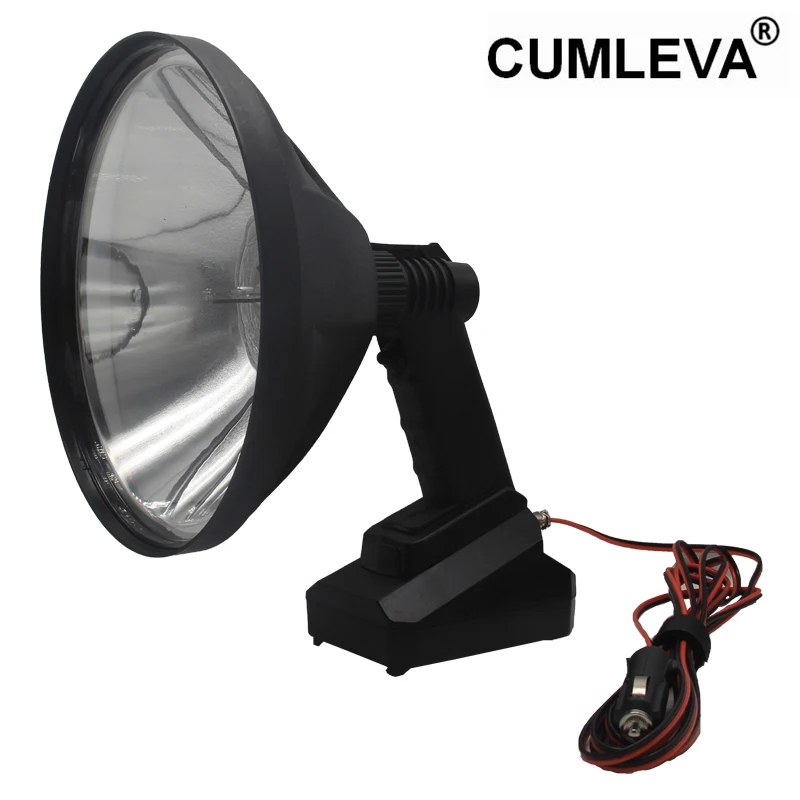 This spotlight produces a 8000 lumen light beam capable of reaching over 2000meters in length and can be user adjusted to produce either a tightly focused and intense spotlight beam or a wide floodlight beam. This light operates on 12 or 24 volts DC and includes a 4meters straight cord with cigarette plug for
