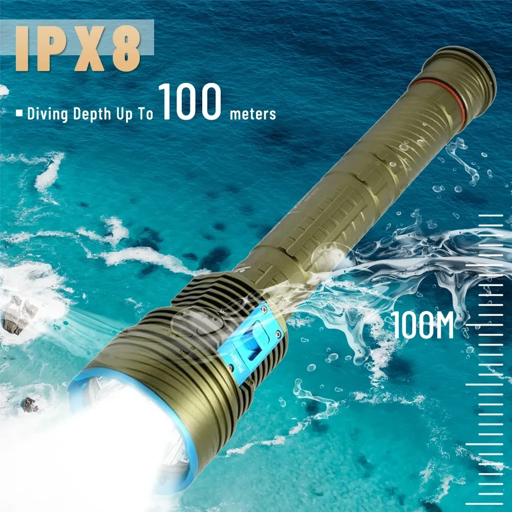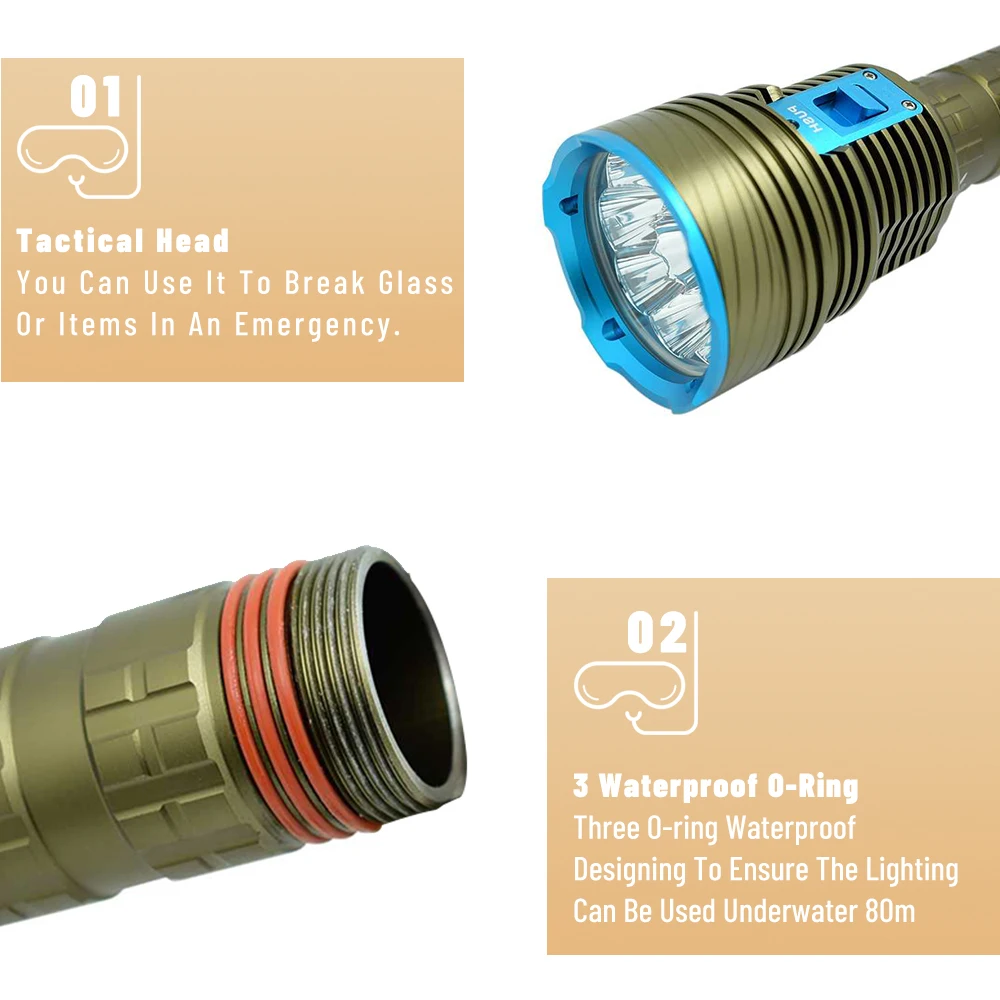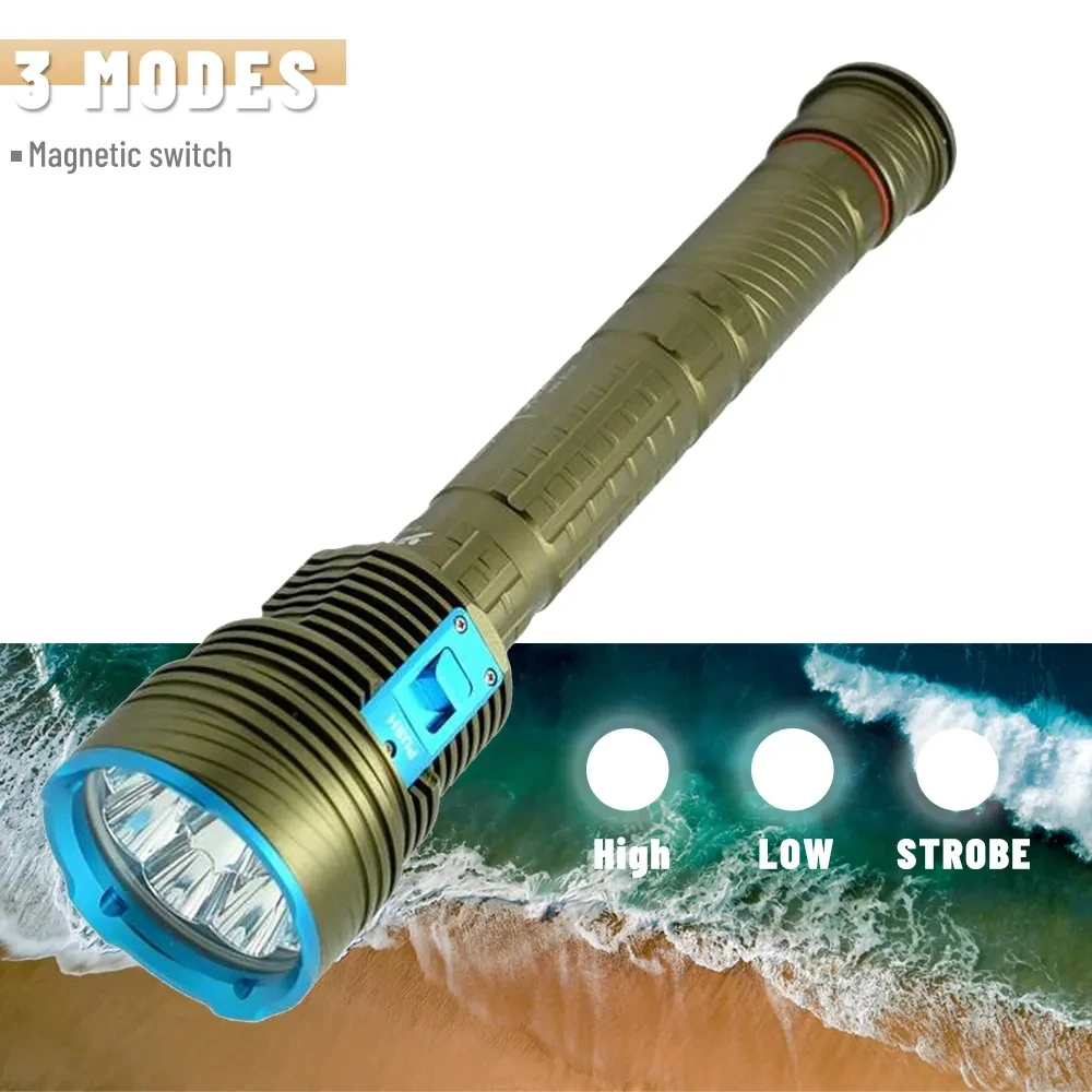 Lightingview Ultra Bright 9xXM-L2 Underwater Lantern Scuba Diving Flashlight Yellow/White 8000LM Underwater Tactical Dive Torch 26650 Battery