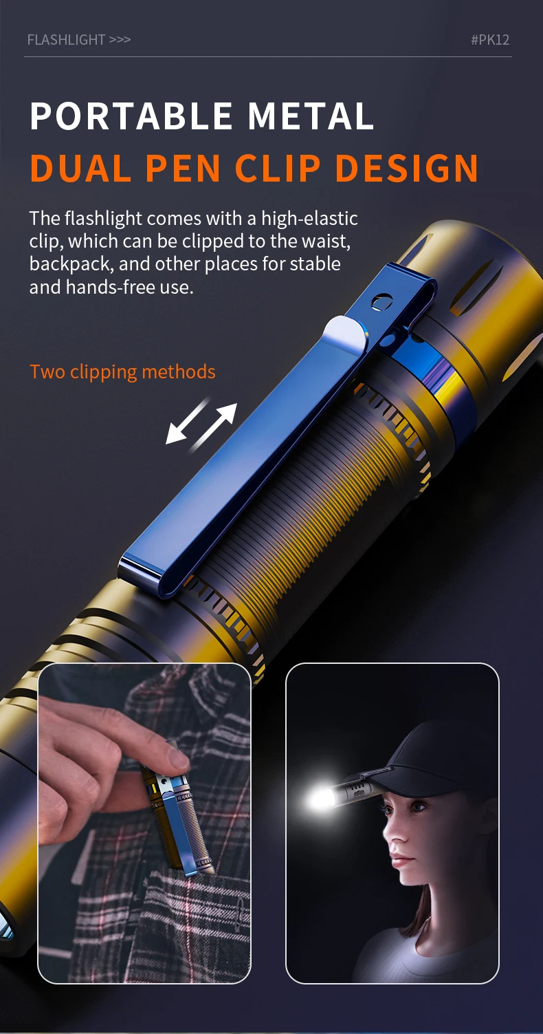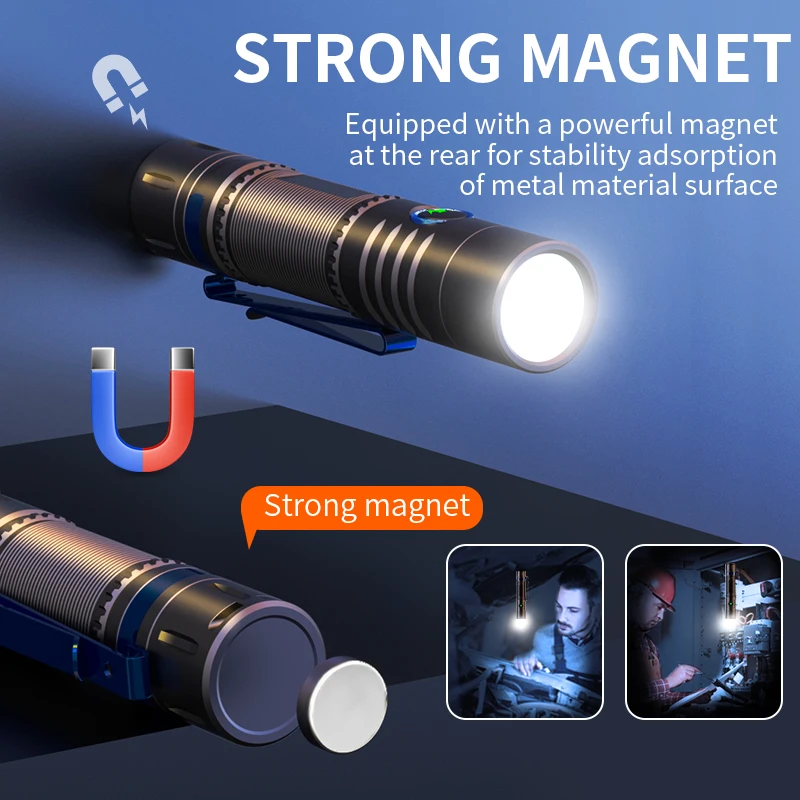 5. Magnetic design: Secured to any metal with a Strong magnetic tailcap.