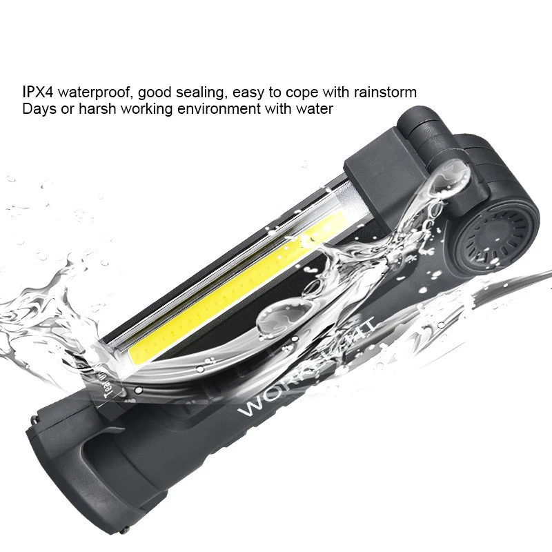 【Waterproof and Widely Used】Water-resistant, ensure the emergency light works fine on rainy or snow days. the COB work light is perfect for car repairing, emergency, camping, traveling, hiking, Fishing, CNC lathes, maintenance, workshop, garage, power outages, home lighting, work at night and working under the hood. (BUT DO NOT PUT IN WATER)
