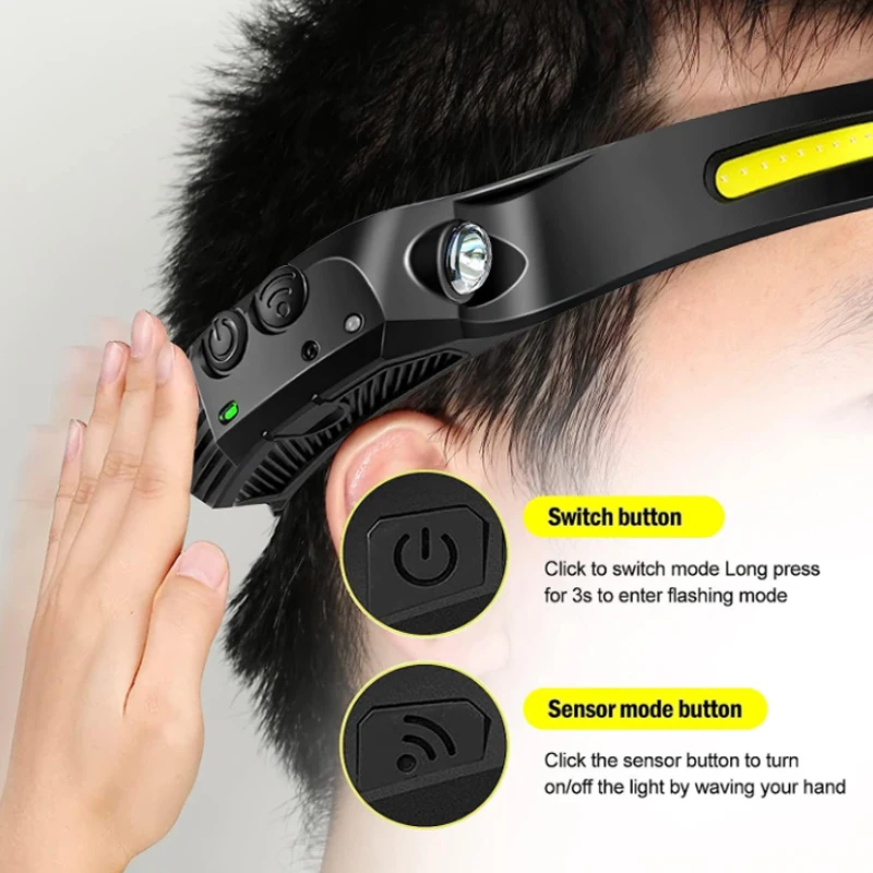 USB Rechargeable LED Sensor Headlamp XPE+COB Headlight Led Head Torch Camping Search Light Head Flashlight for Fishing Lantern