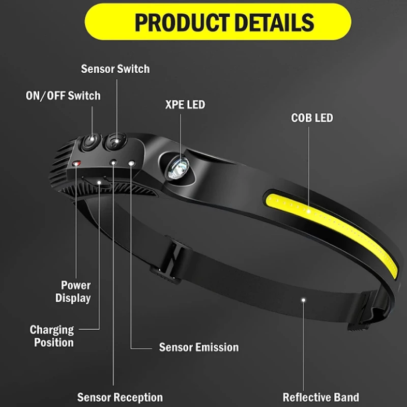 Be the first to review “USB Rechargeable LED Sensor Headlamp XPE+COB Headlight Led Head Torch Camping Search Light Head Flashlight for Fishing Lantern”