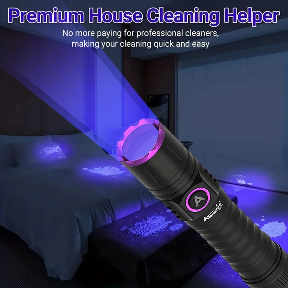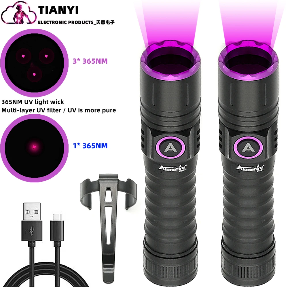 UV 365nm Blacklight LED Flashlight Rechargeable Invisible Ink Marker Cat Dog Urine Tinea Ore Money Scorpion Fluorescence Light