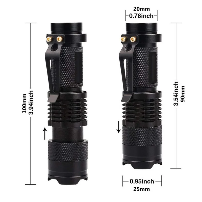 Material: Aluminium Color: Black Size: 91mm length x24mm diameter Powered by 1 x AA batteries (not included) Package includes: 1 * UV LED Flashlight