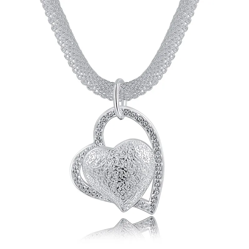 925 Sterling Silver 18 Inch Double Heart Pendant Necklace For Women Fashion Wedding Charm Jewelry