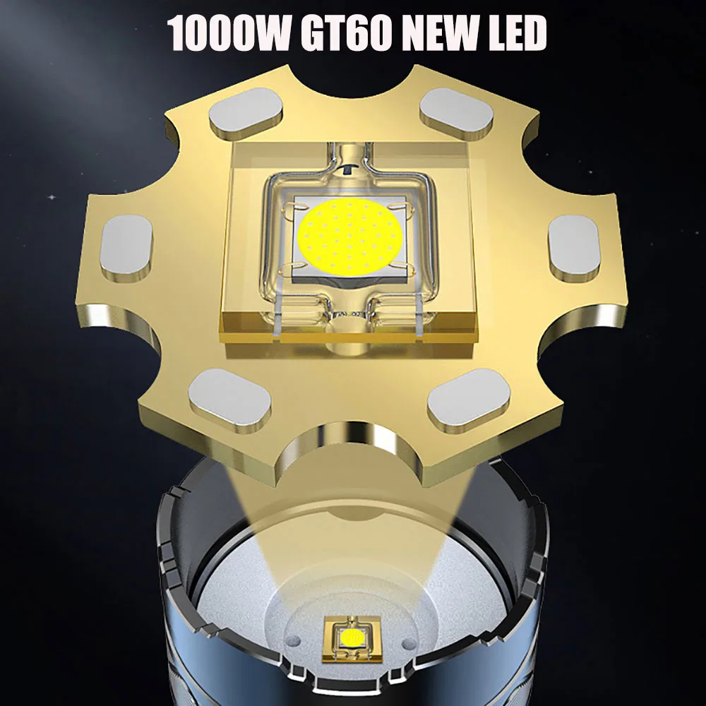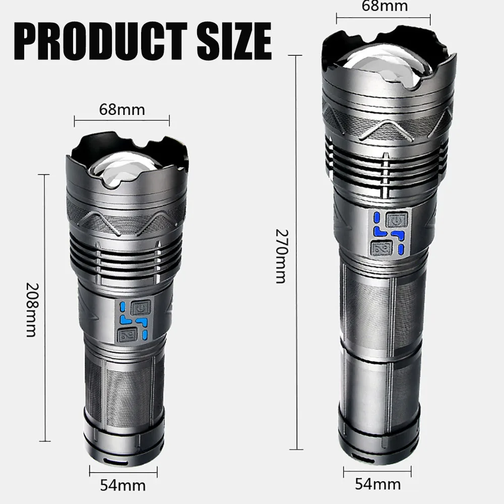 Worde’s Brightest LED Flashlight Spotlight Long Range 10000m Zoomable Emergency Torch Outdoor Flashlight Power Display 32000MAH