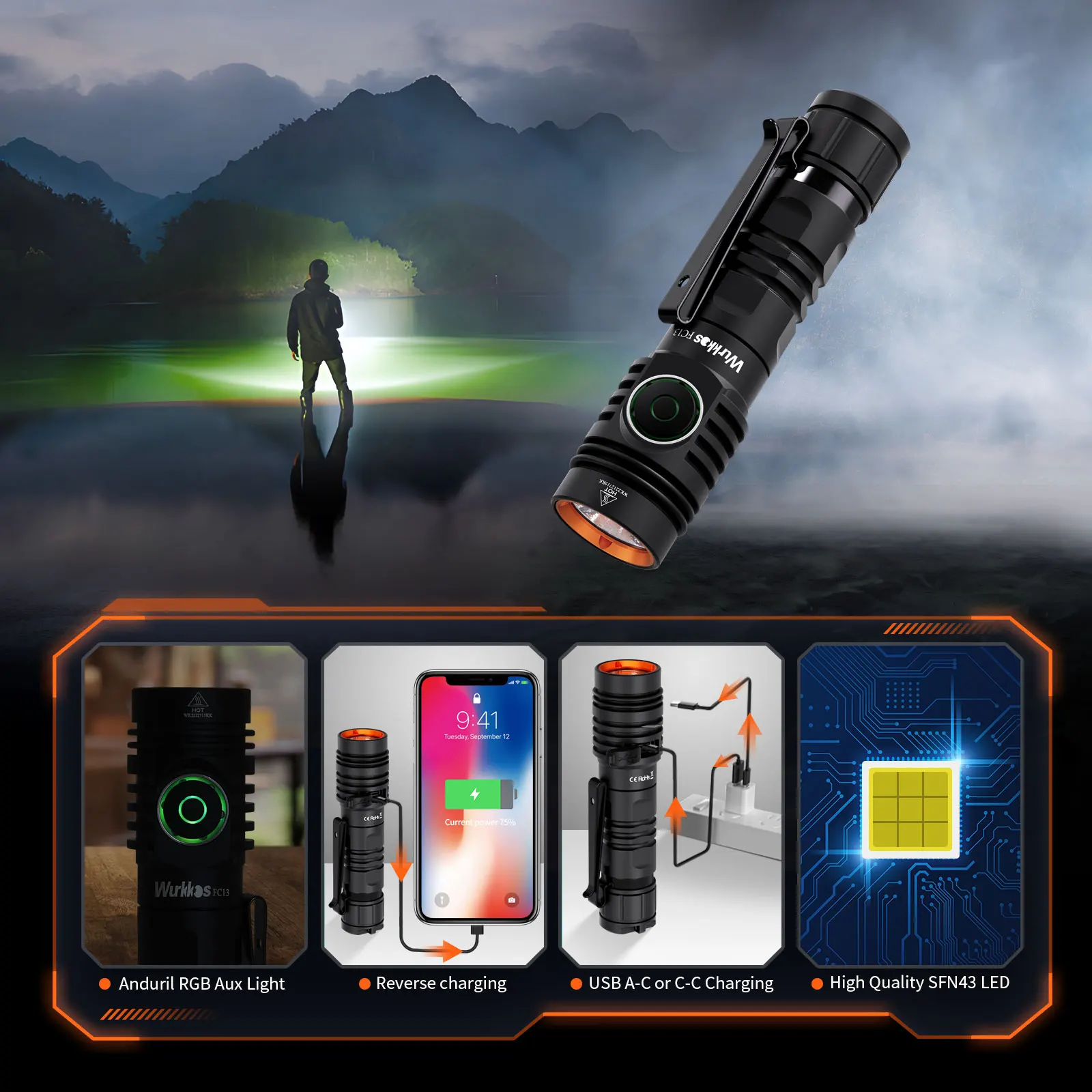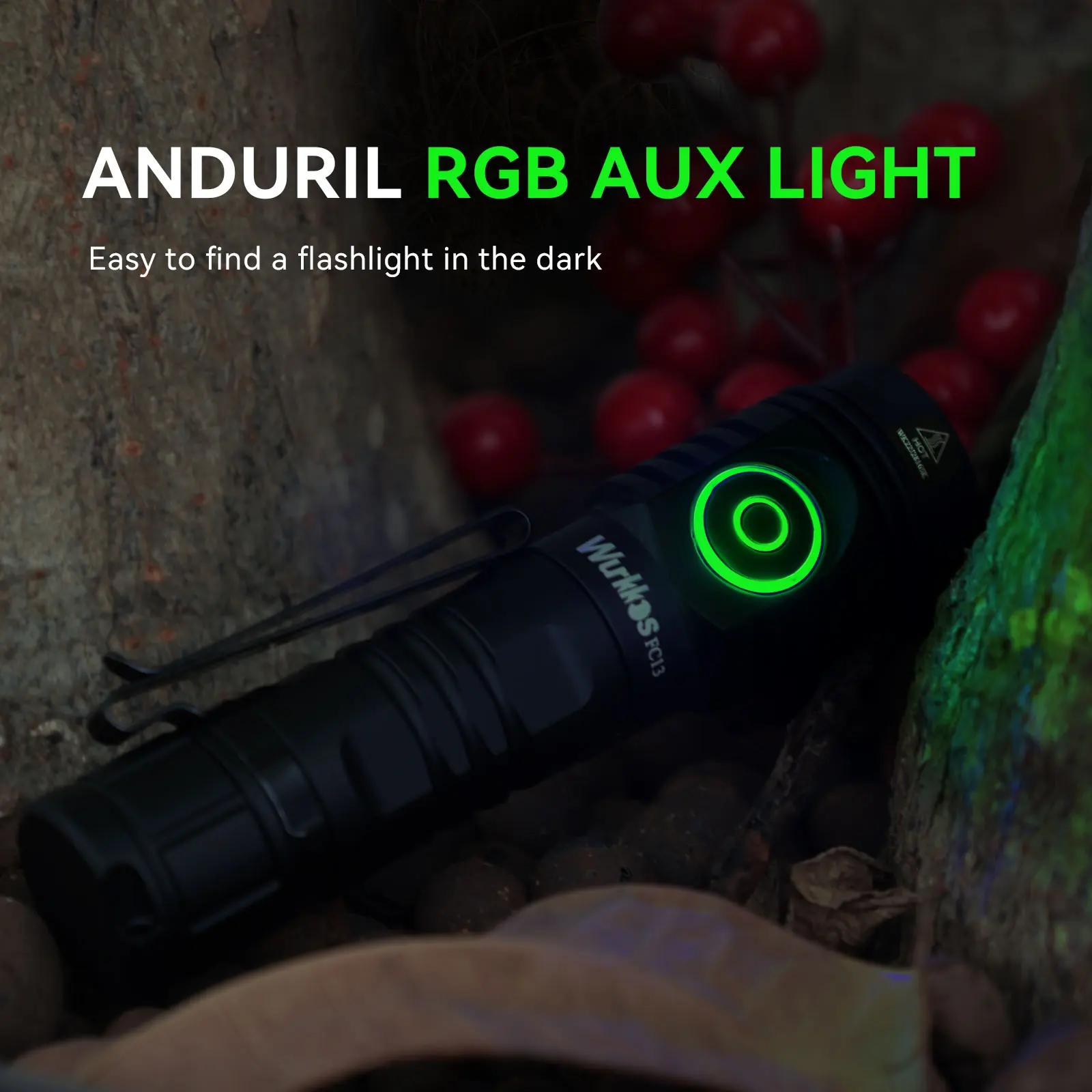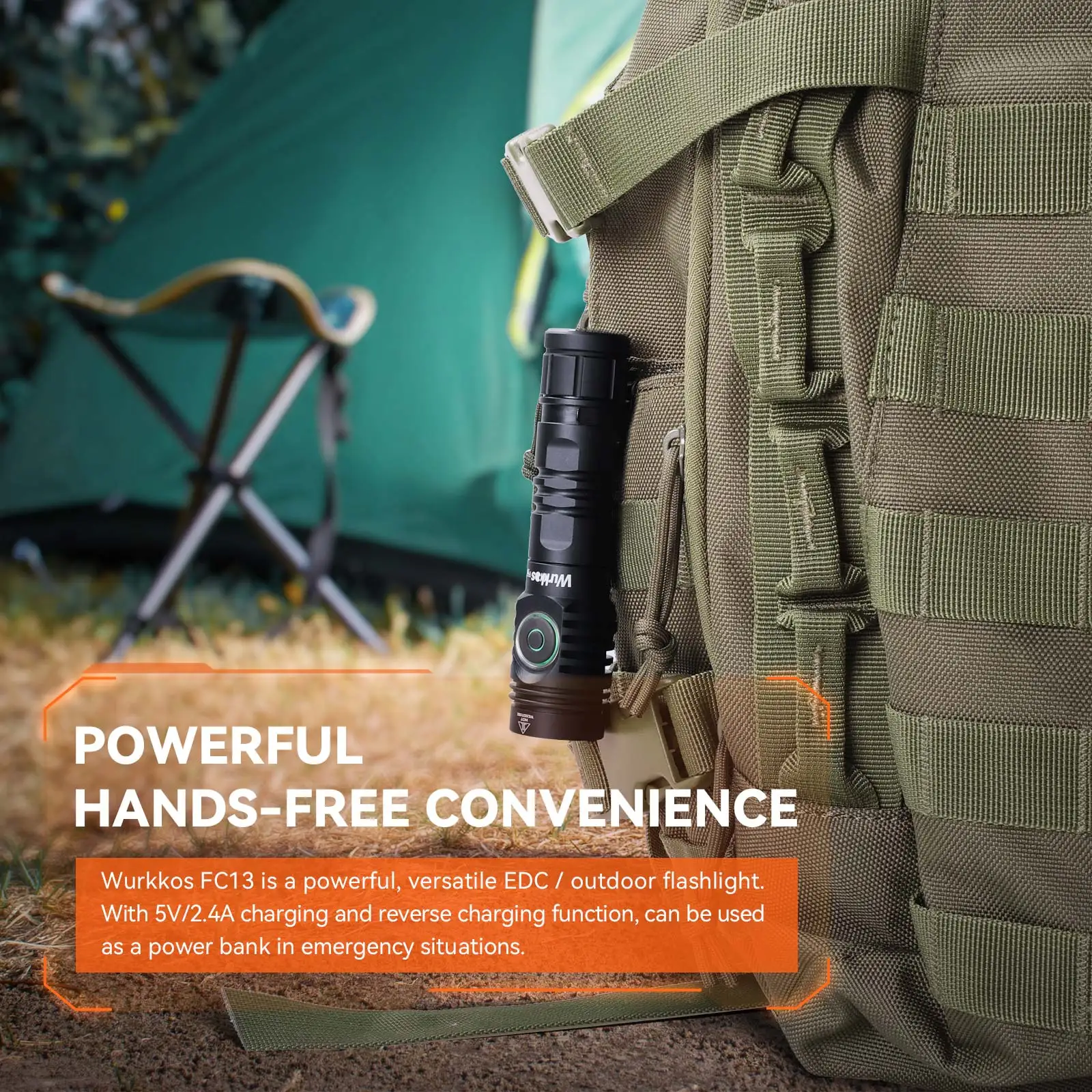 Wurkkos FC13 is a powerful, versatile EDC / outdoor flashlight, powered by one 18650 rechargeable Li-ion battery,designed for home, EDC or outdoor activities. It uses 1*5700K XHP50.2 LED and BLF Anduril 2.0 UI .With 5V/2.4A charging and reverse charging function, can be used as a power bank in emergency situations.
