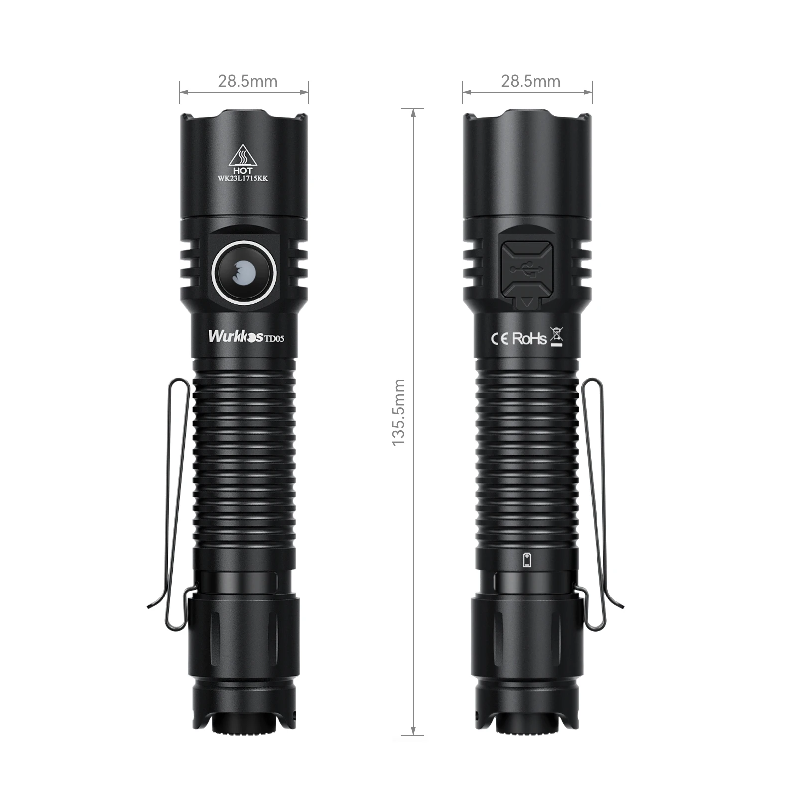 The TD05 flashlight operate by a tactical tail switch and a side switch, easy to use for every one.