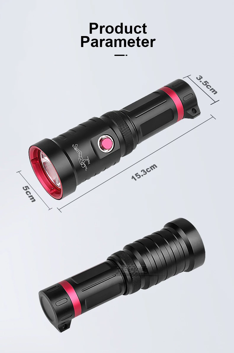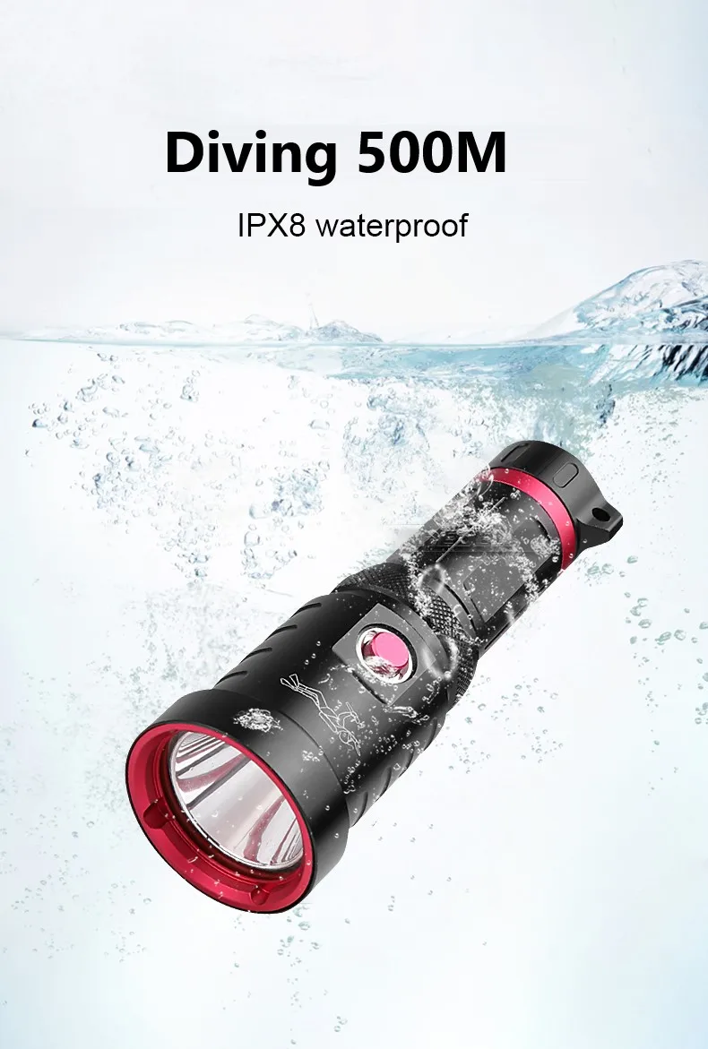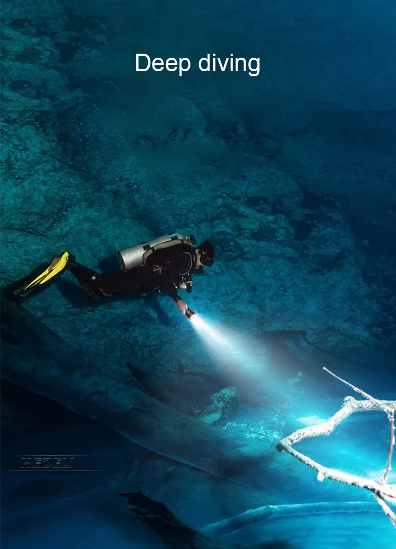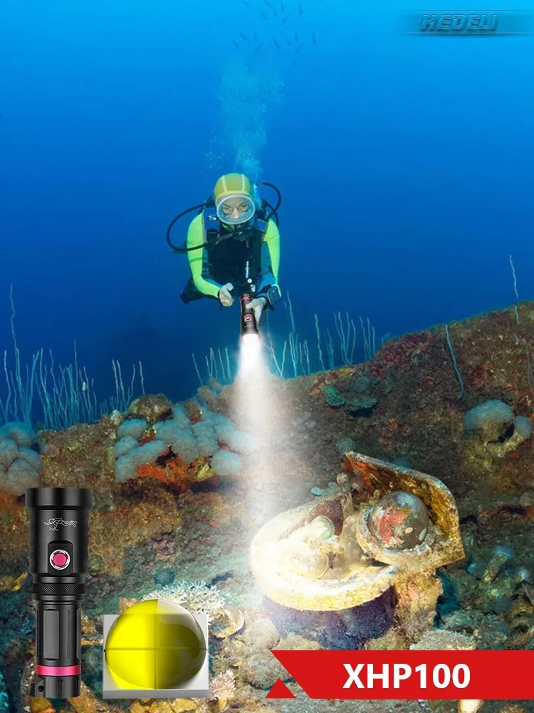 The newly upgraded XHP100 flashlight has been welcomed by the majority of buyers. It lasts twice as long as XHP90.2. The quality of XHP100 flashlight is better than XHP90.2. XHP100 is the first choice tool for underwater activities and is also suitable for home and other outdoor activities. It is more advanced than other diving flashlights and can reach a diving depth of 500M. The product material is made of super aerospace aluminum alloy, which has IP68 waterproof effect and can easily withstand being underwater for more than ten hours. This is a professional diving LED flashlight. It is a must-have diving flashlight for diving enthusiasts and underwater photography, allowing you to dive freely.