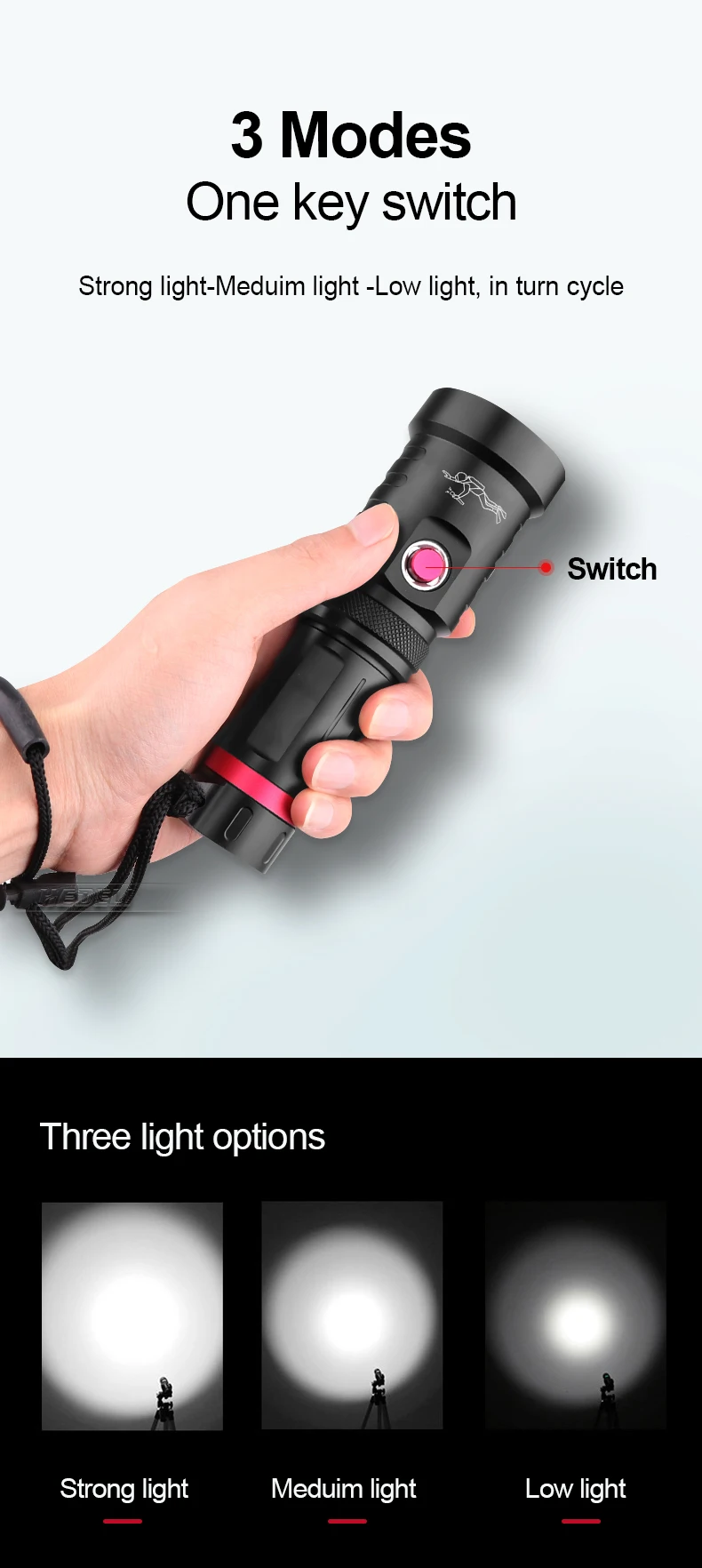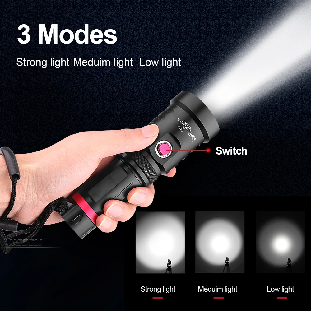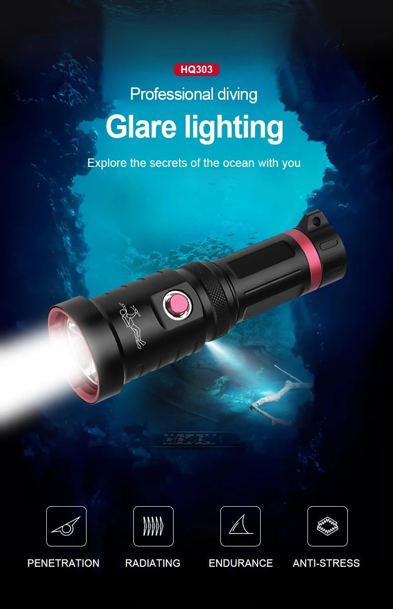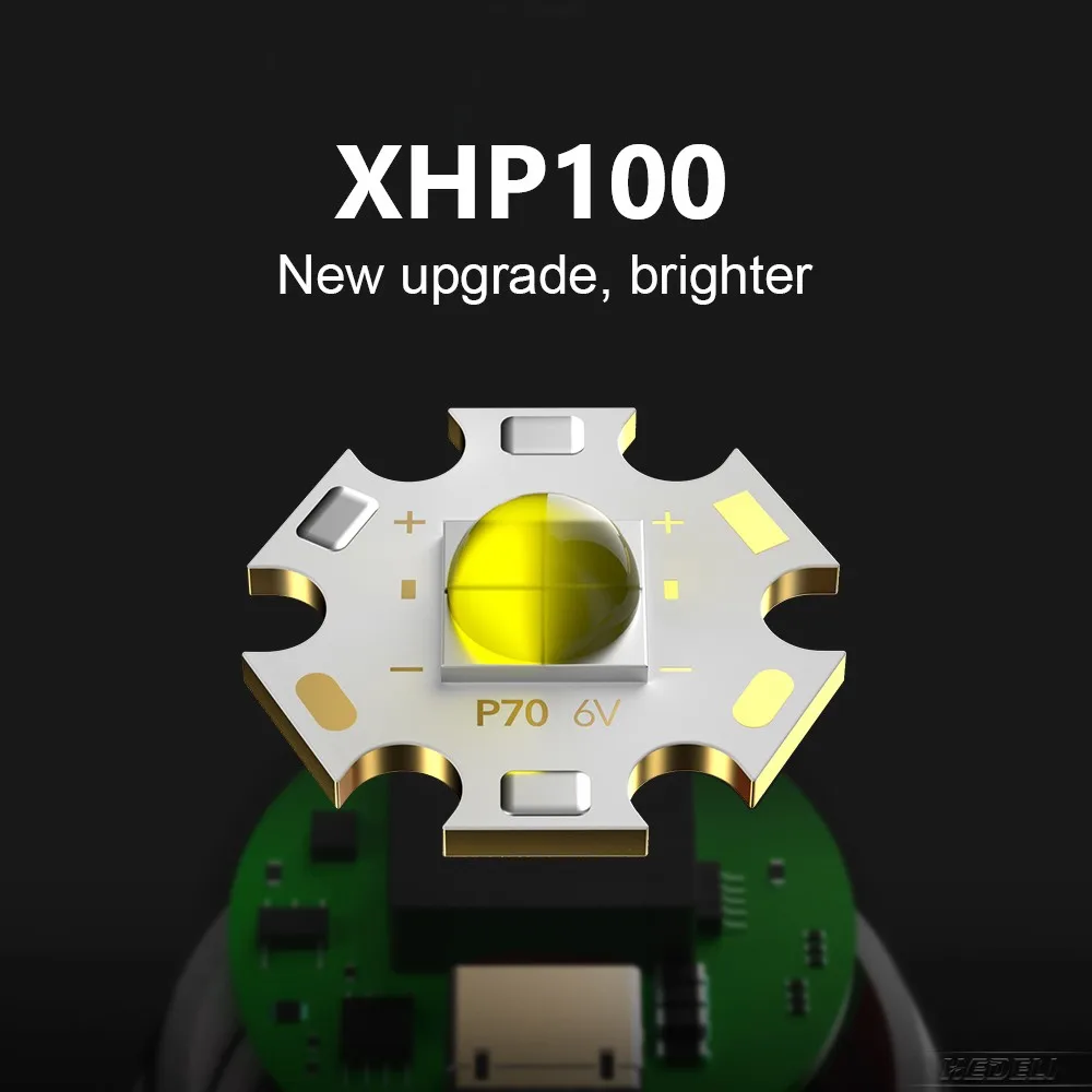 The newly upgraded XHP100 flashlight has been welcomed by the majority of buyers. It lasts twice as long as XHP90.2. The quality of XHP100 flashlight is better than XHP90.2. XHP100 is the first choice tool for underwater activities and is also suitable for home and other outdoor activities. It is more advanced than other diving flashlights and can reach a diving depth of 500M. The product material is made of super aerospace aluminum alloy, which has IP68 waterproof effect and can easily withstand being underwater for more than ten hours. This is a professional diving LED flashlight. It is a must-have diving flashlight for diving enthusiasts and underwater photography, allowing you to dive freely.