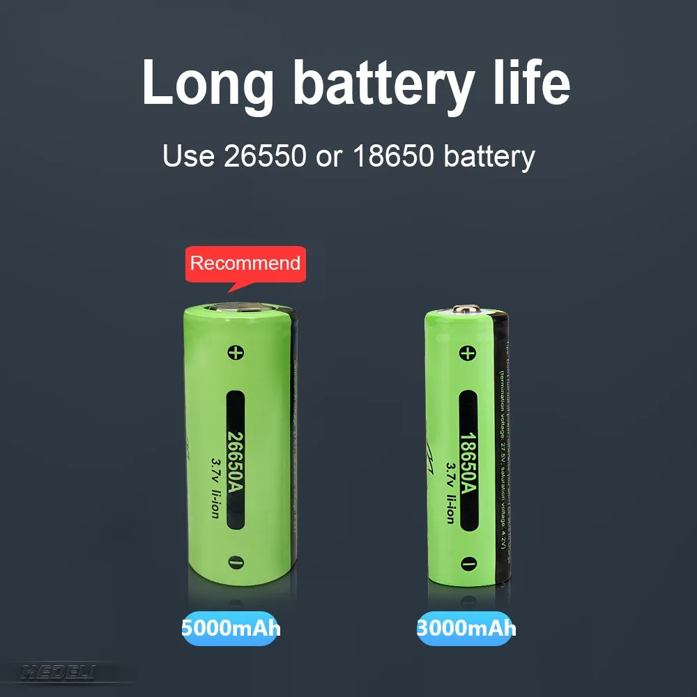 Battery type: 1*18650 or 1* 26650 lithium battery/3.7V