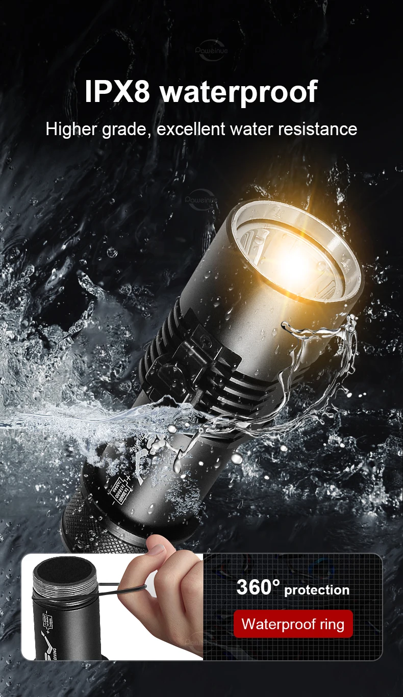 ✧ Professional diving IPX8 waterproof flashlight, you can move freely underwater.