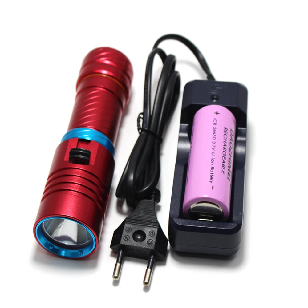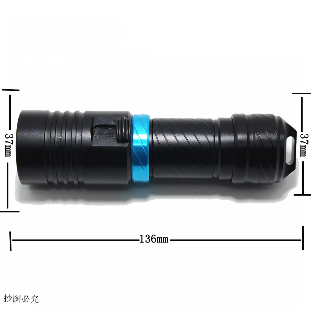 XM-L2 Super bright Diving Flashlight IPX8 highest waterproof rating Professional diving light Powered by 18650 or 26650 battery